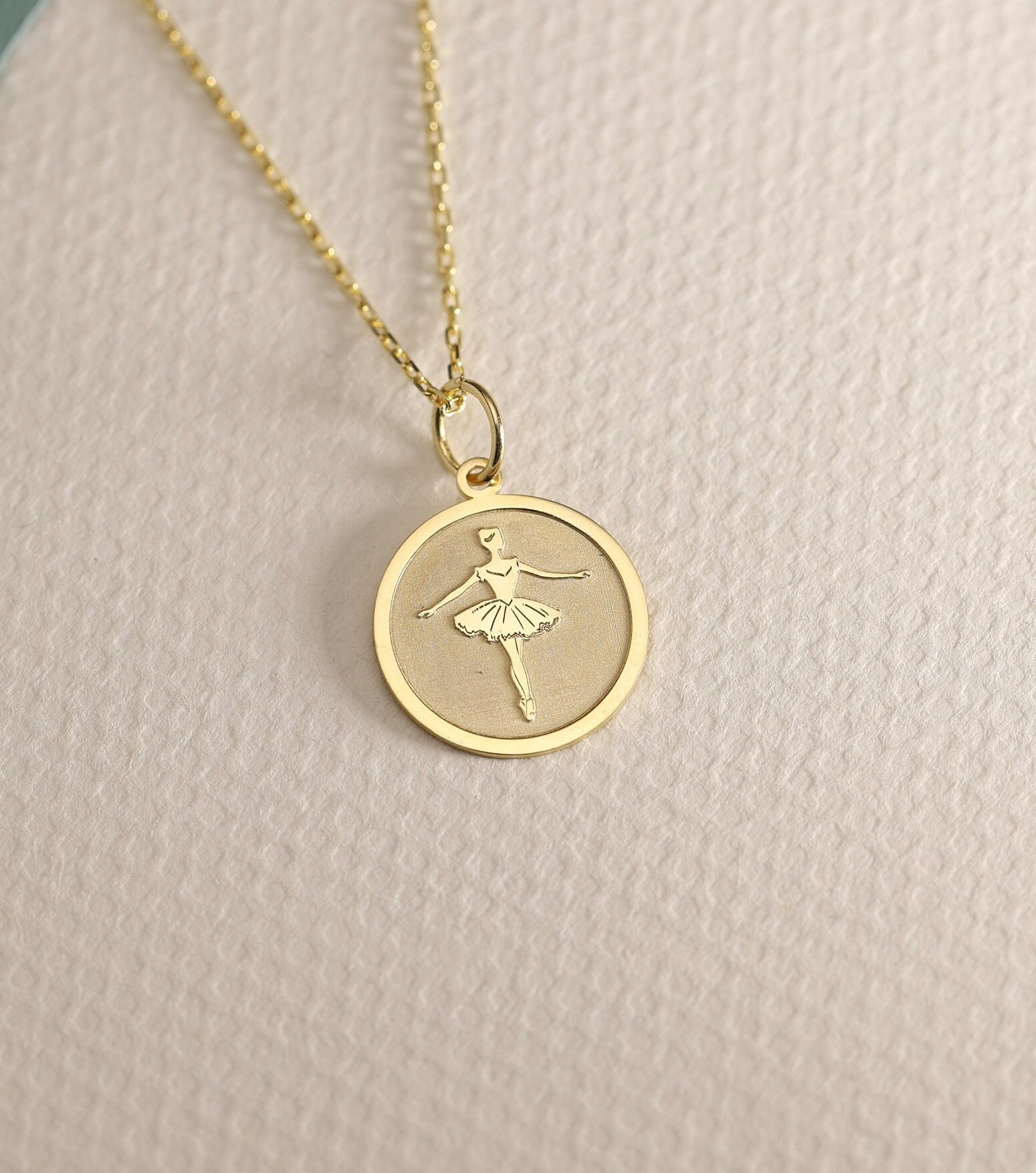 "Collana ballerina in oro, ciondolo danza, gioielli ballerina, collana in oro massiccio, ciondo...