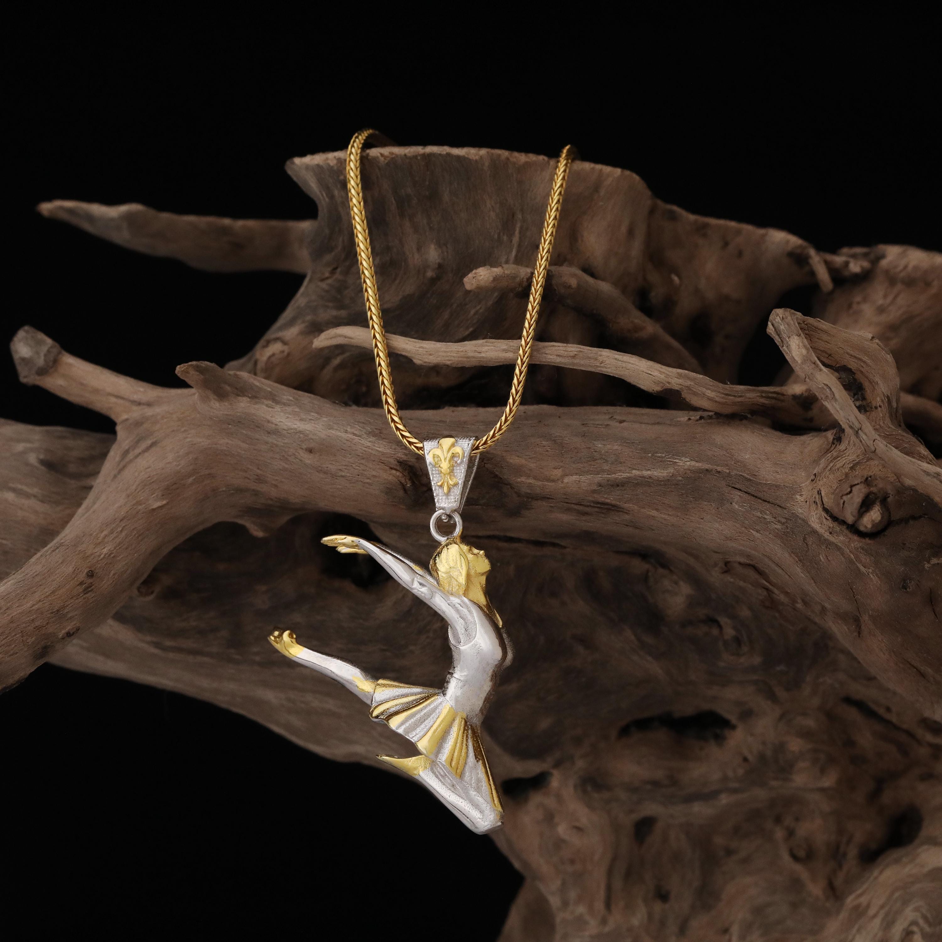 Collana con ballerina in oro, gioielli da ballerina, collana da bal...