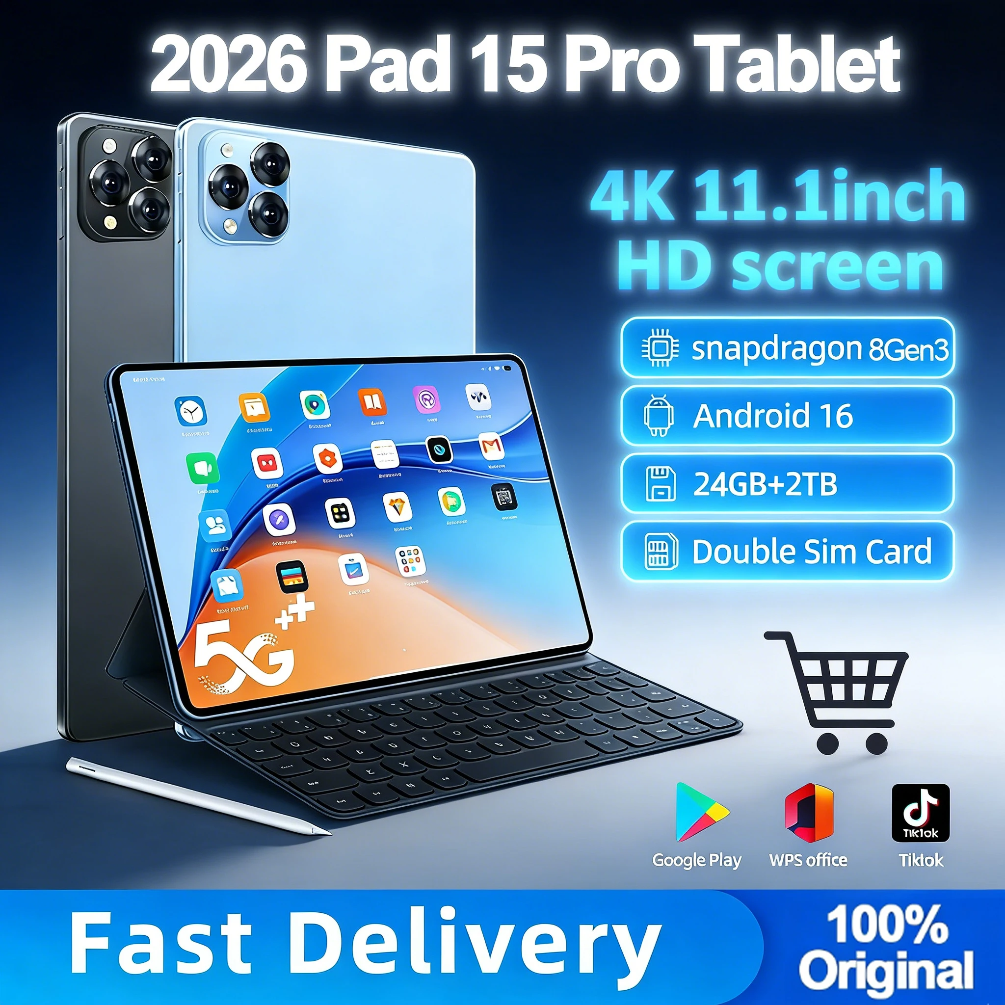 • 2026 Nuovo Pad 15 Pro Tablet PC Android 16 24GB + 2TB 20000mAh Snap...