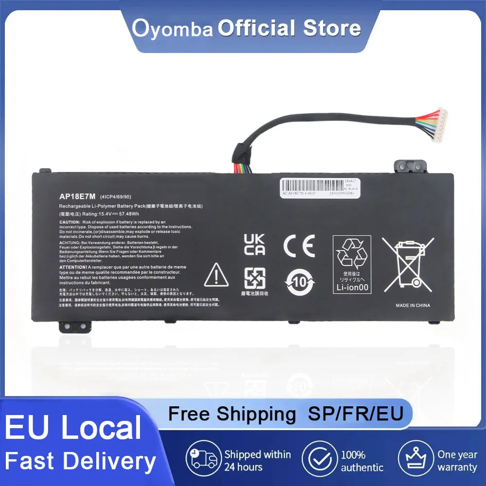 Oyomba AP18E7M Batteria per Acer Nitro 5 AN515-54 AN517-51 AN515-55 AN515-44 AN515-43 Nitro 7 AN715-...