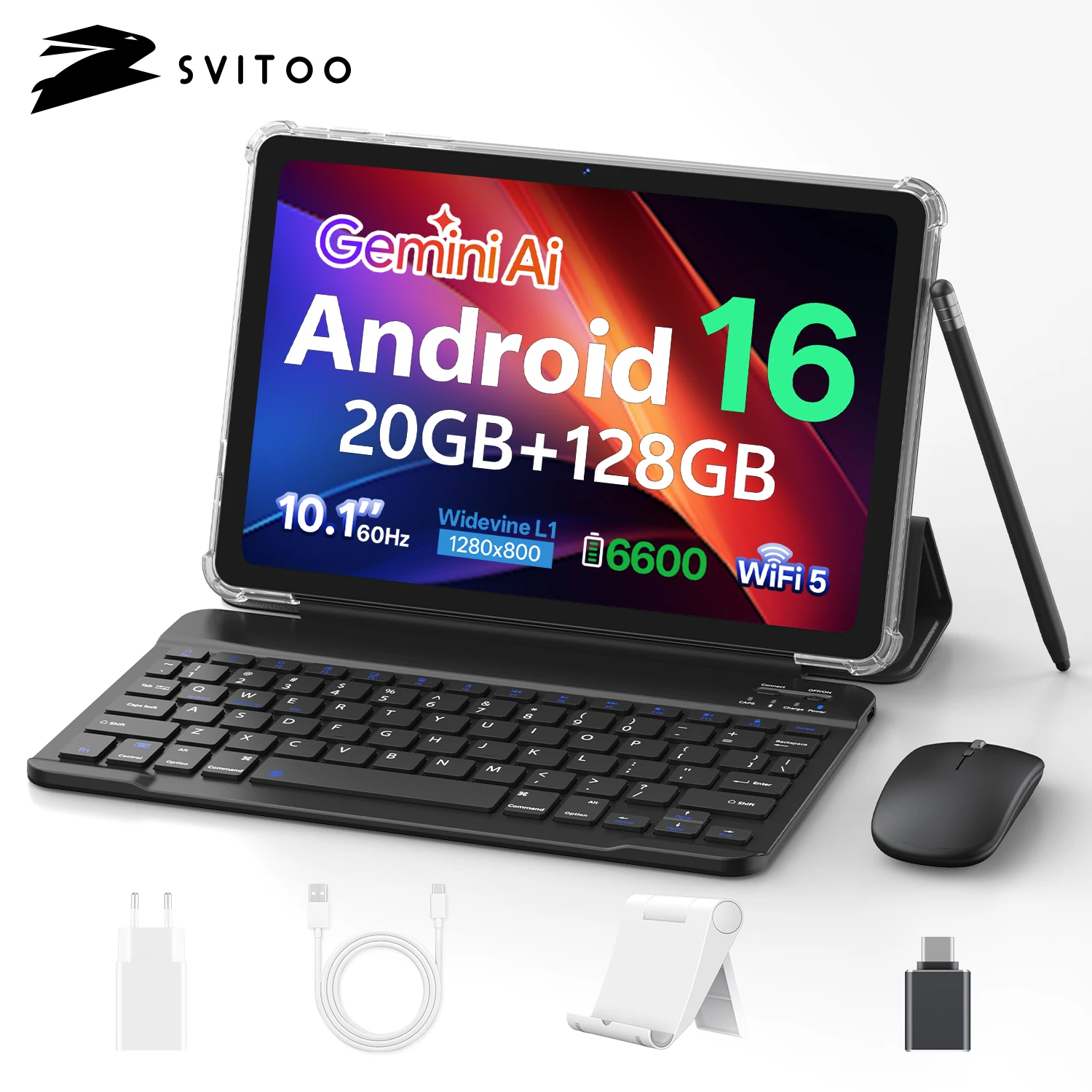 Tablet SVITOO Android 16 2025 da 10,1 pollici 1280 x 800 HD IPS Processore Octa-Core 20 GB RAM 128 G...