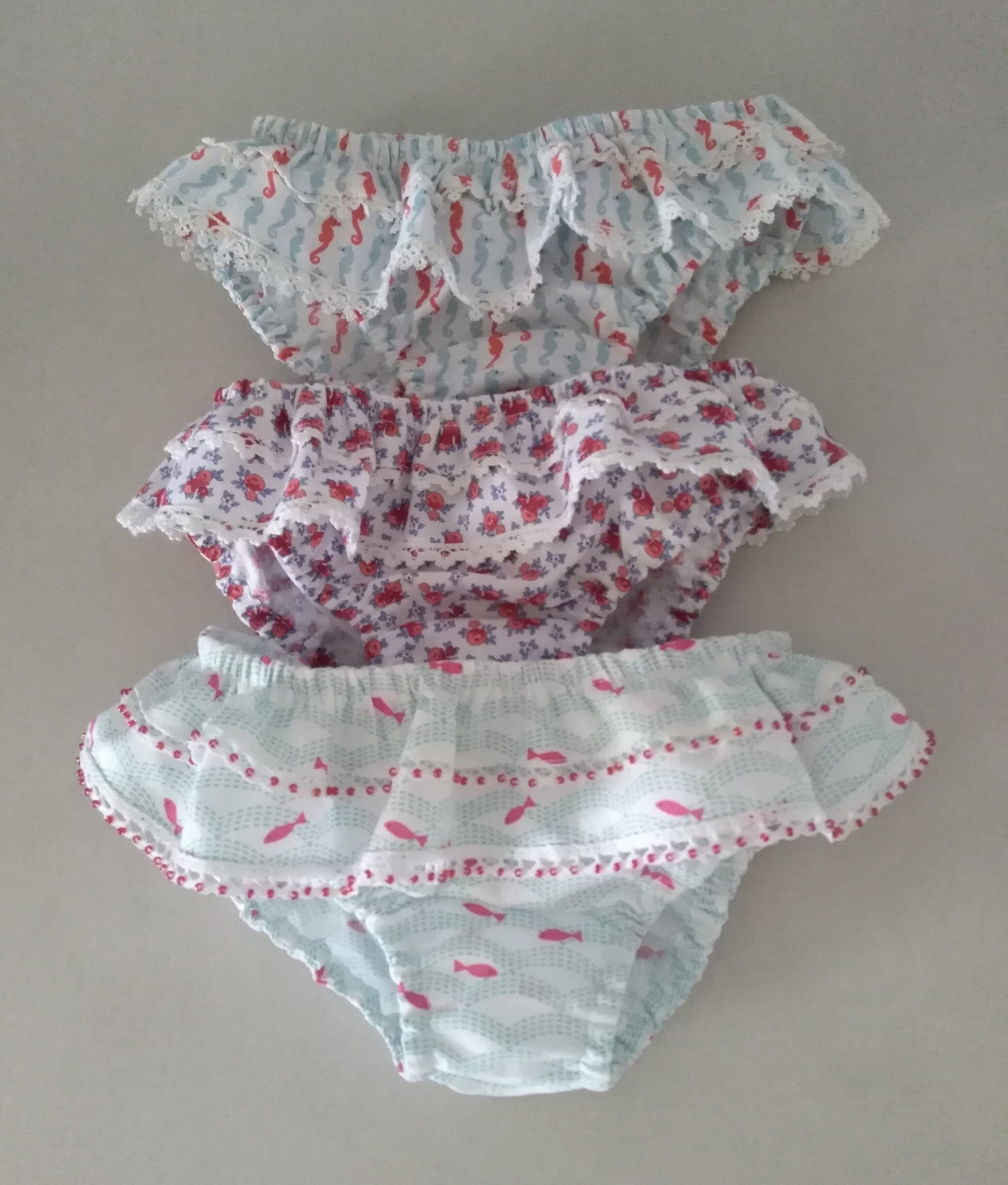 Costume mare slip bambina,costume con balze per bimba 2-3 anni, mon...