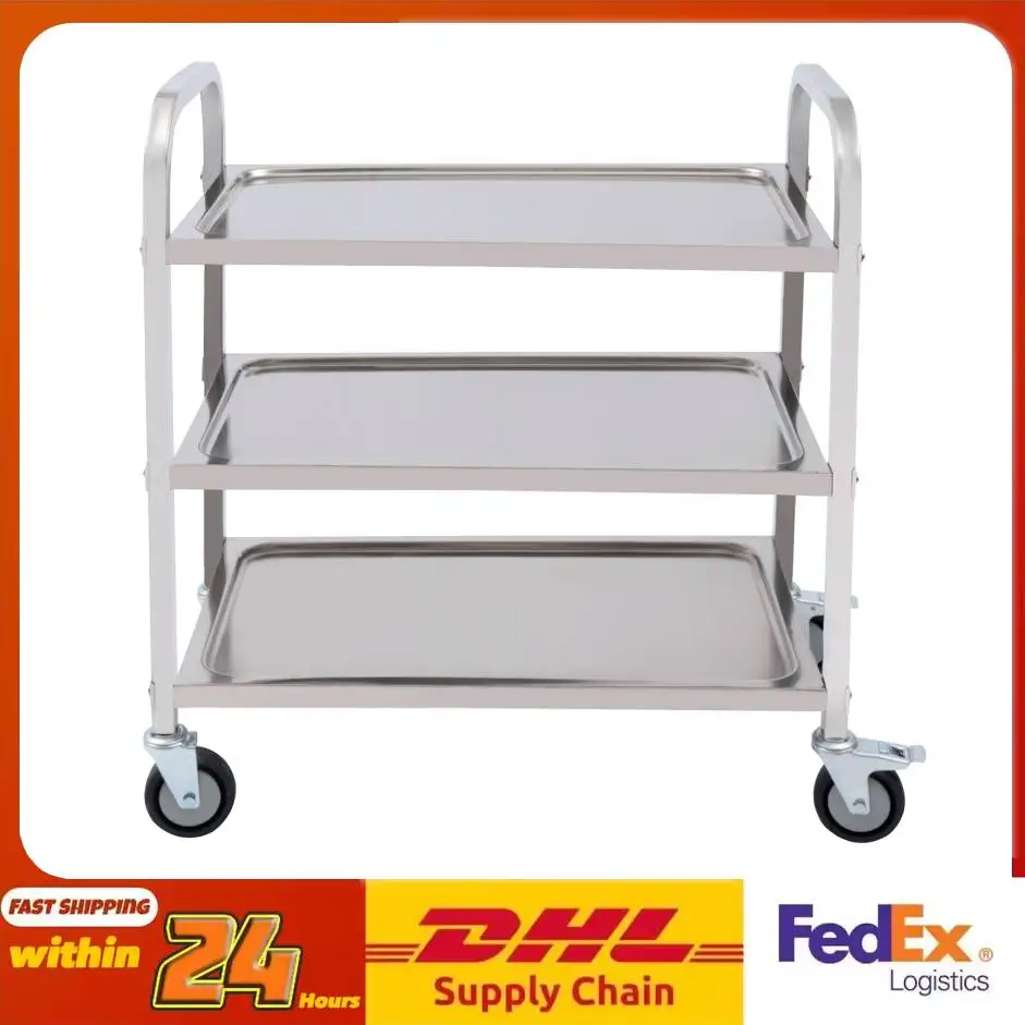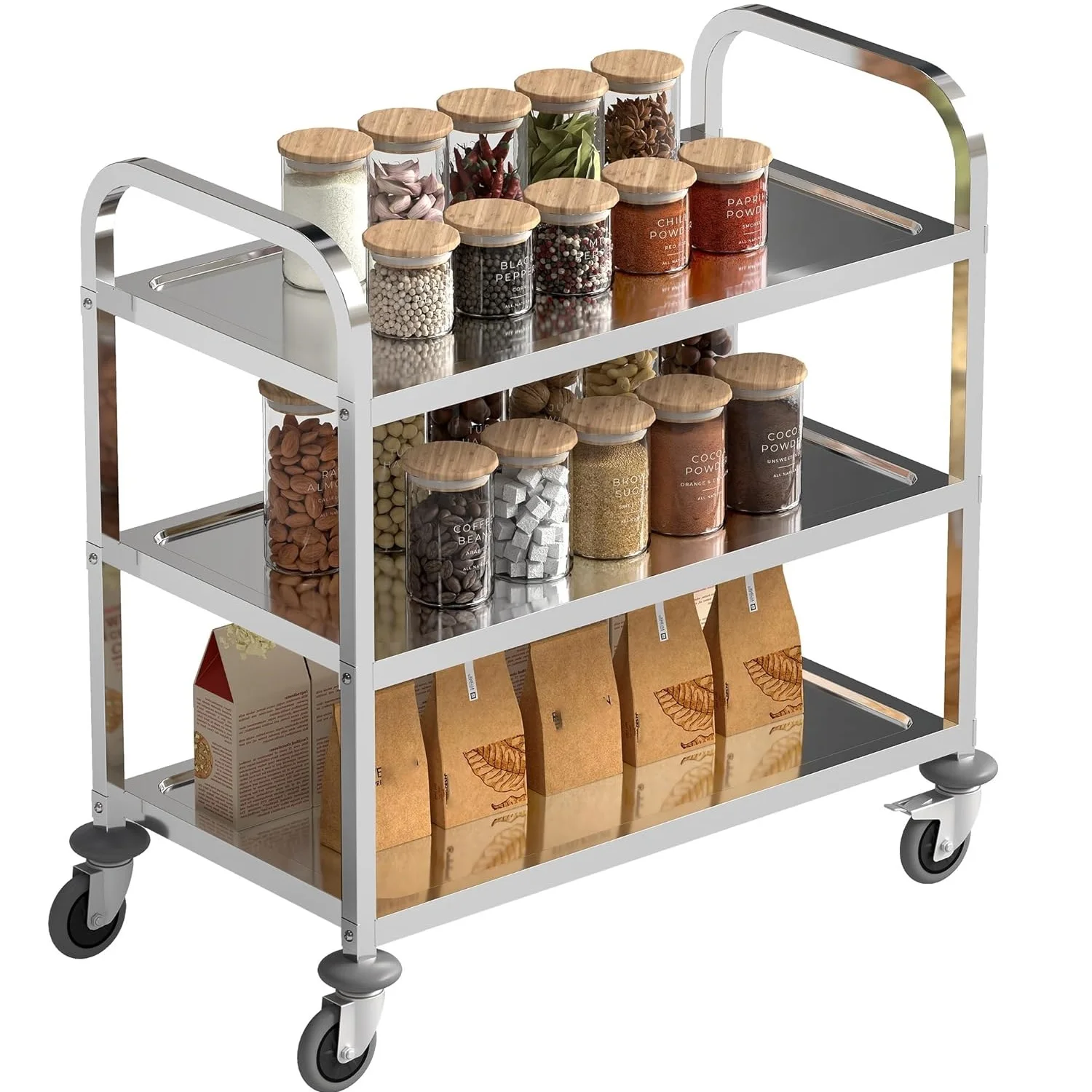 Carrello da portata Carrello in acciaio inossidabile 201 Carrello multiuso a 3 strati per cucine Ris...