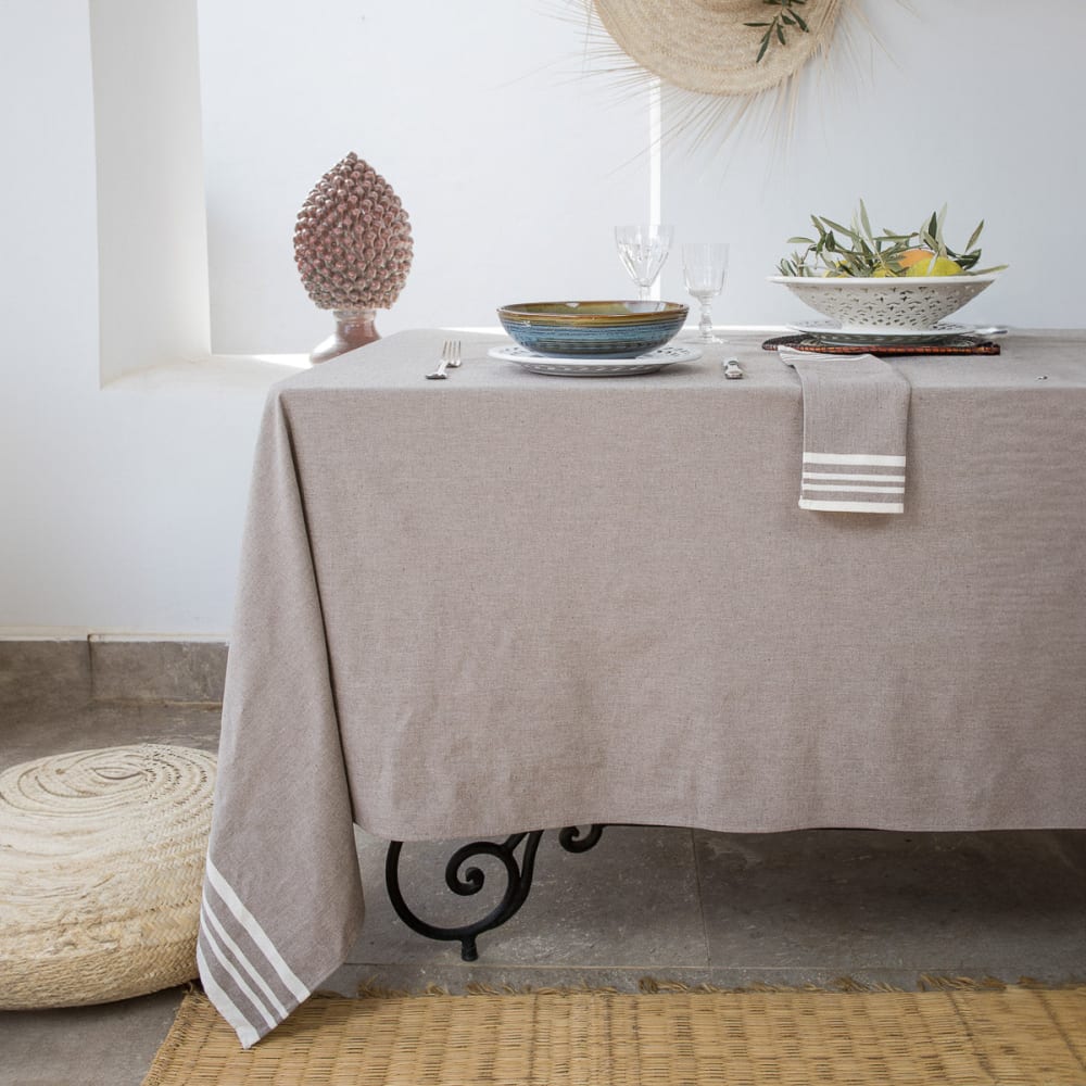 Tovaglia + 10 tovaglioli cotone tortora 180x400 cm