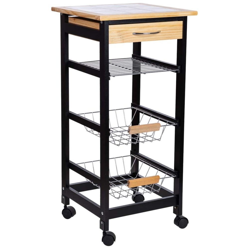 Questo carrello da cucina in legno dalle dimensioni 37x37x76 cm è ideale per riporre e organi...