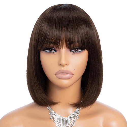 parrucche caschetto corto capelli umani 8 pollici colla senza colla...