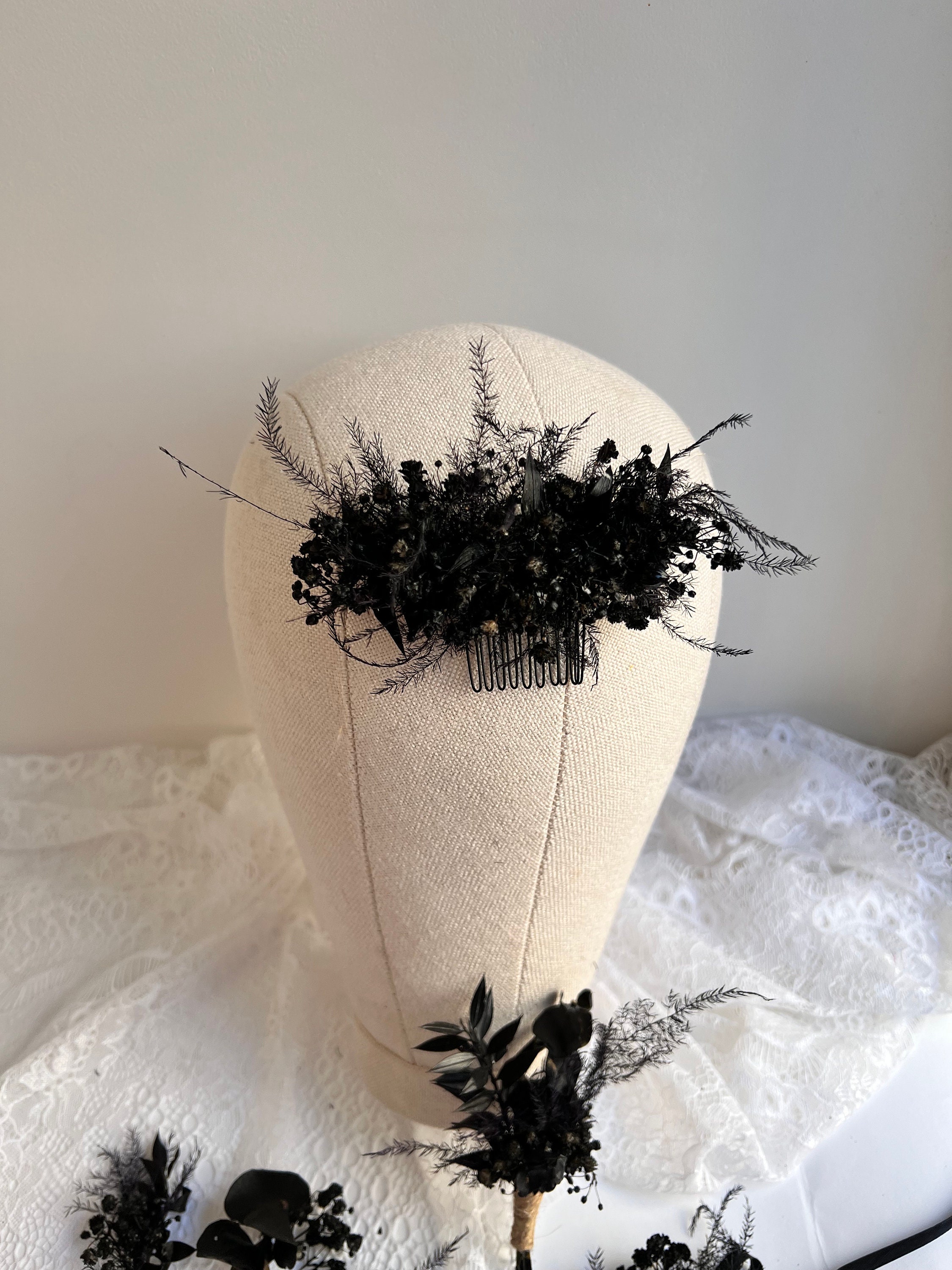 Pettine per capelli da sposa gotico nero Fiore fiore nero Forcine p...