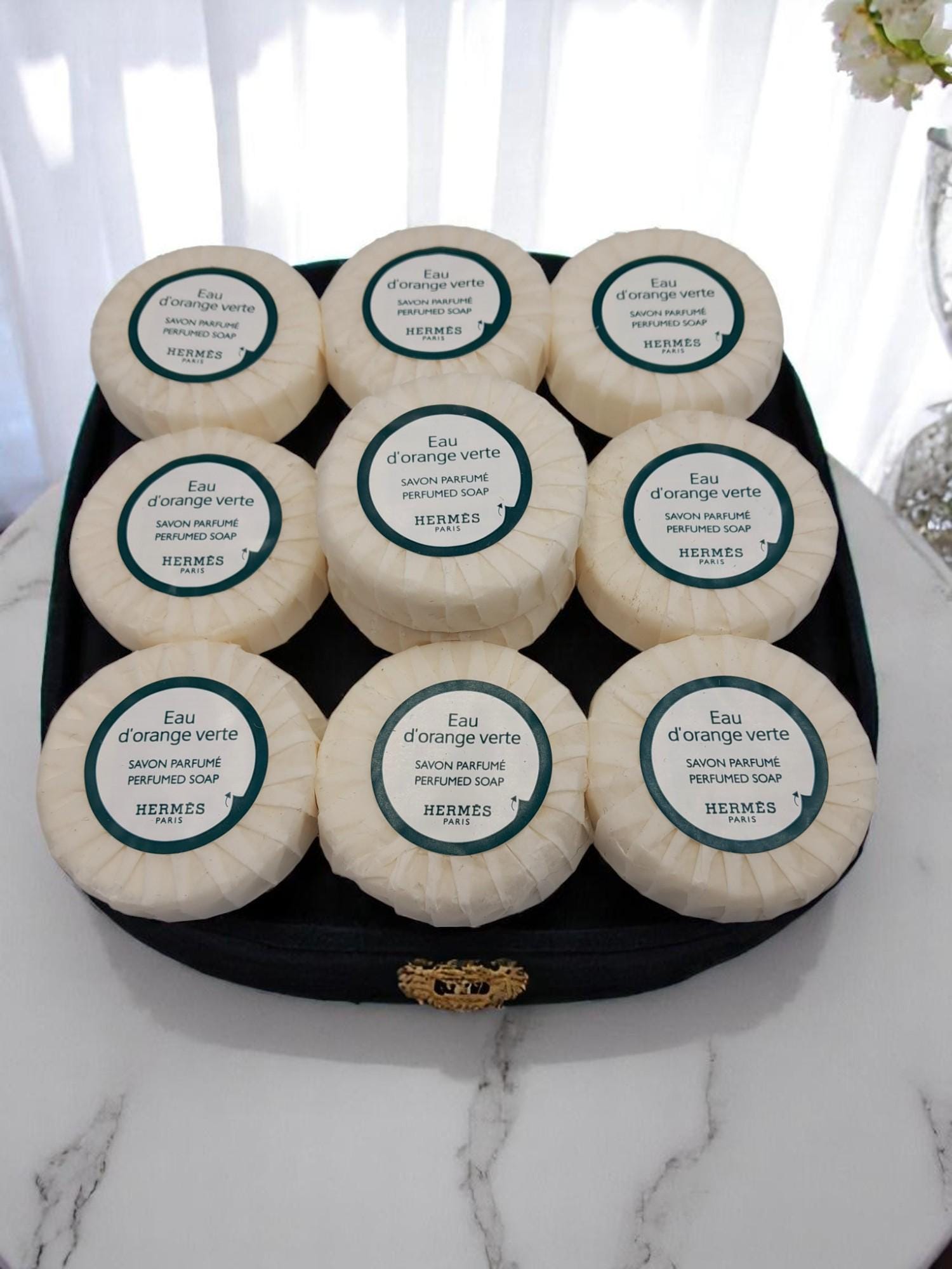 Set di 10 saponi di lusso Hermès Prodotto in Francia, Parigi Fragranza: Acqua di Arancia Verd...