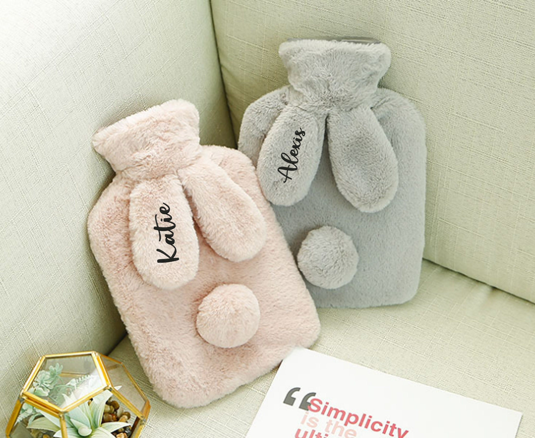 Borsa personalizzata per la bottiglia di acqua calda con copertina per coniglietto imbottito carino,...