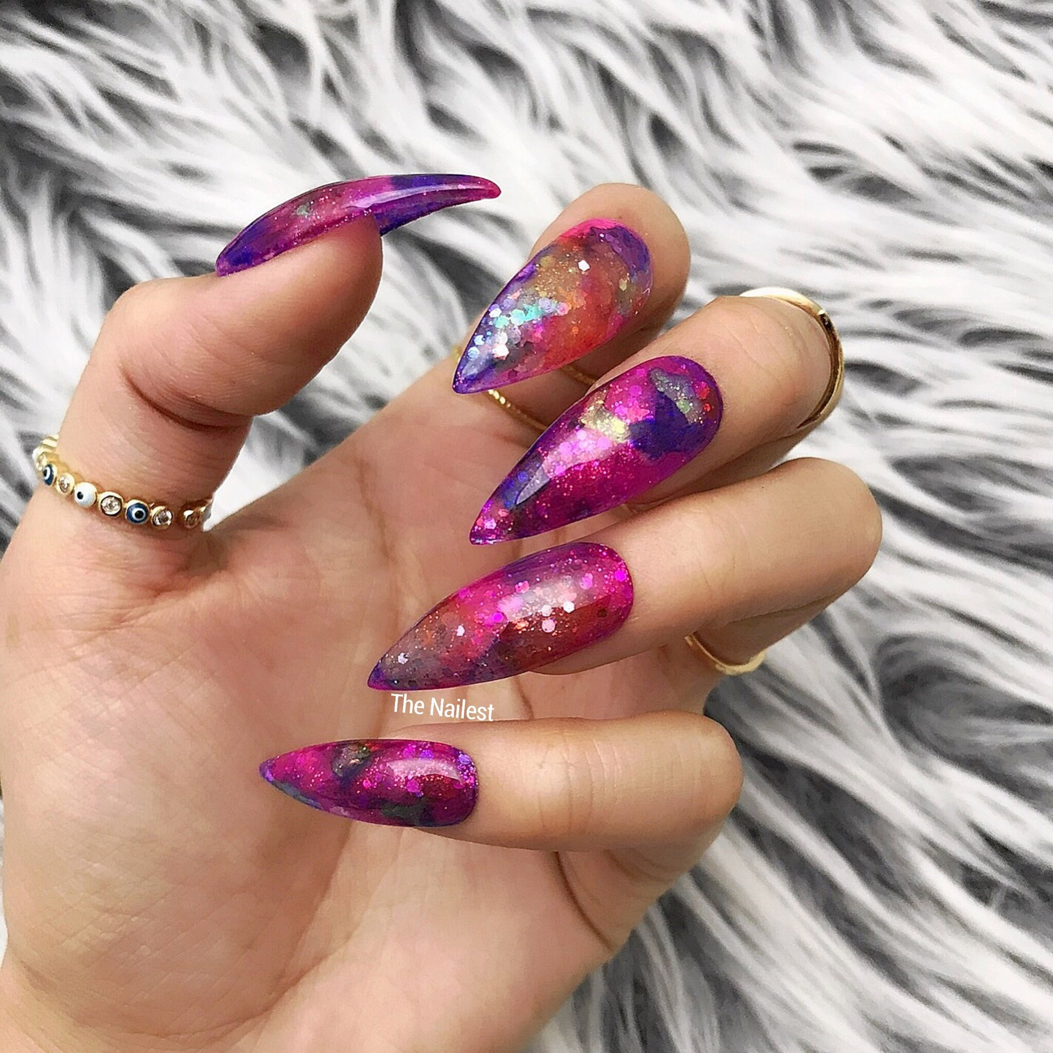 Milky Way Viola Rosa Fucsia miscela Glitter Press On Nails / Press ...