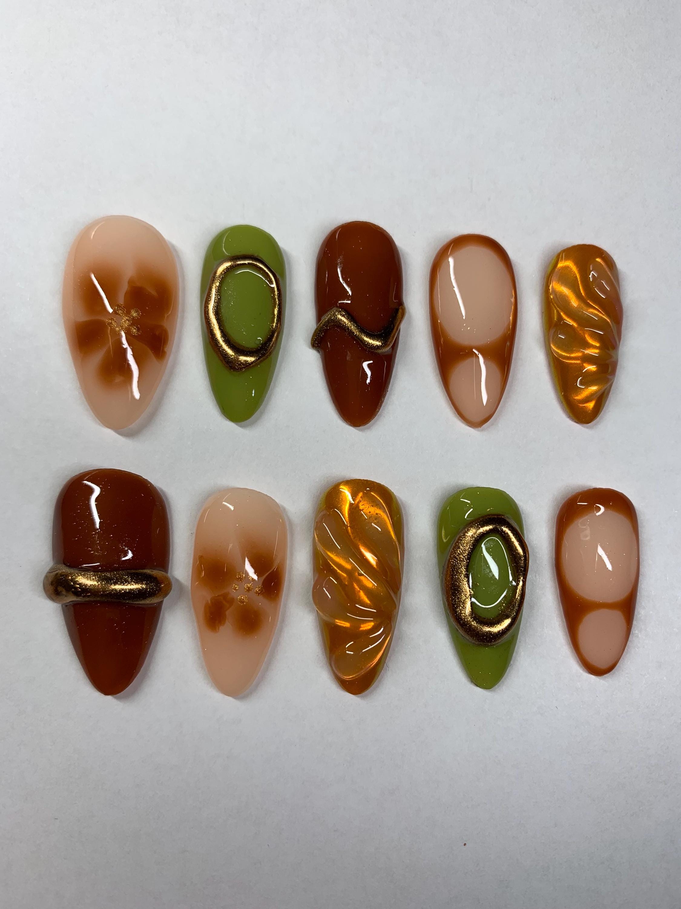 Unghie press on mix and match astratte, unghie press on autunnali, ...