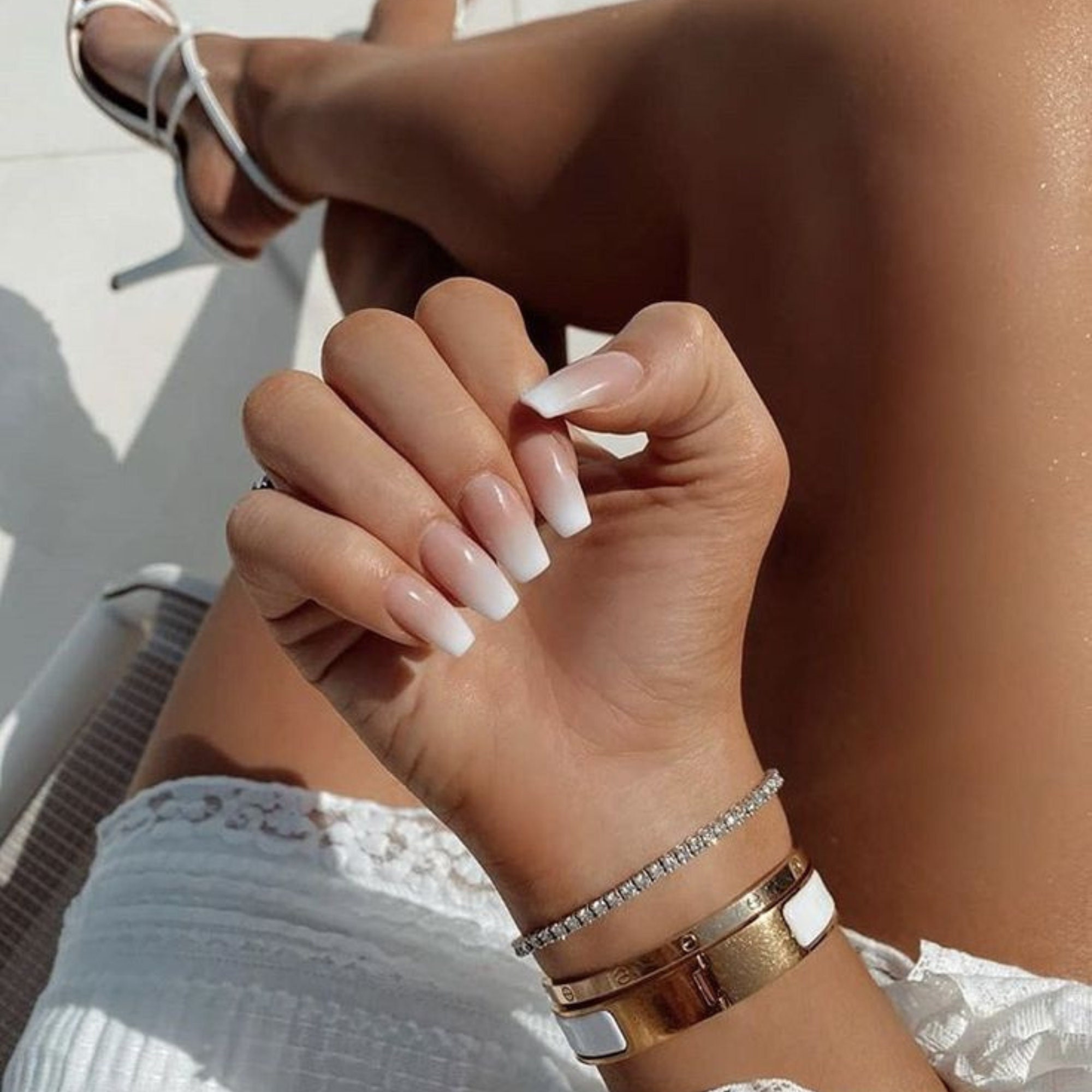 24 pezzi French Ombre Short Coffin Ballerina Press On Nails / Frenc...