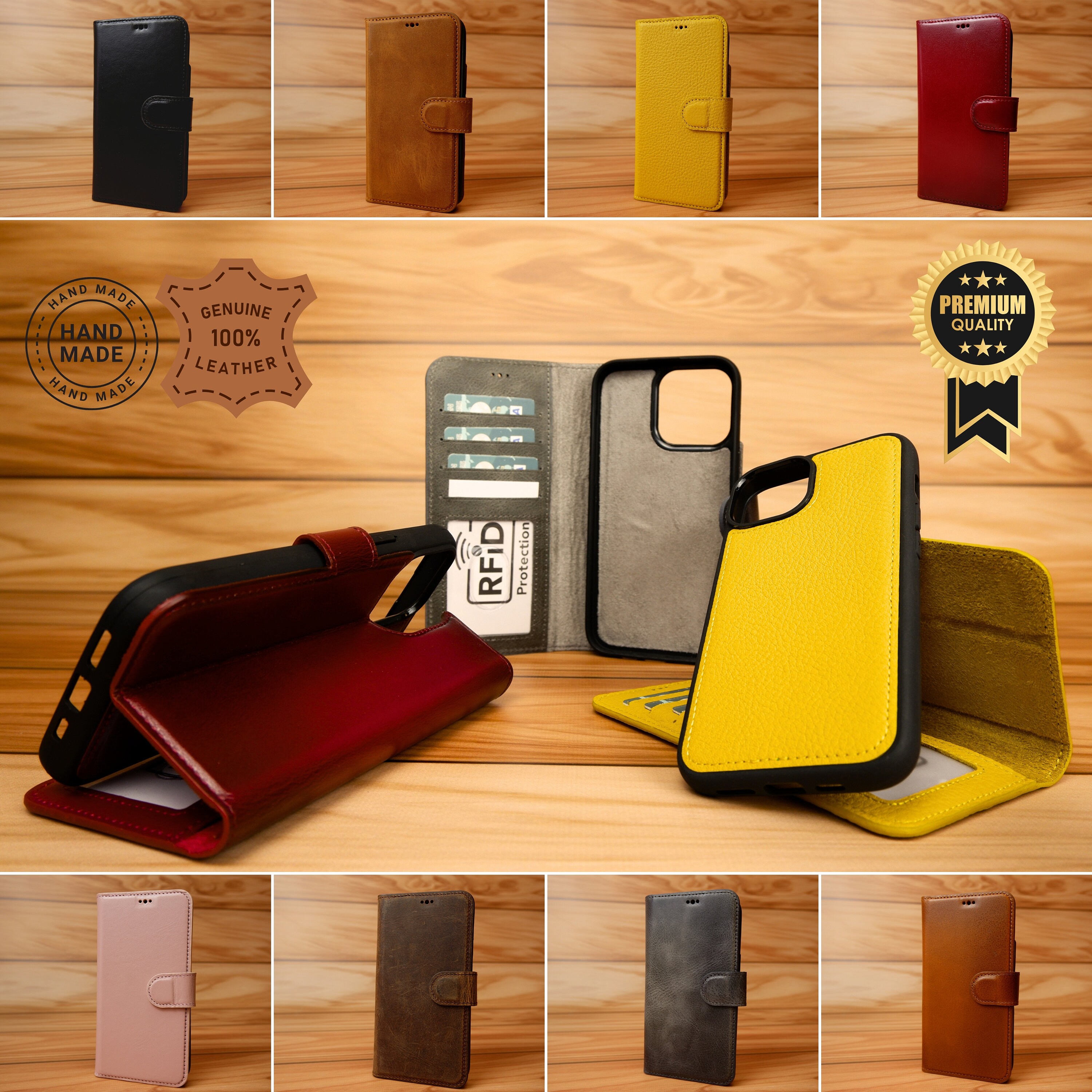 Custodia a portafoglio in pelle per iPhone 15+, cover magnetica rim...