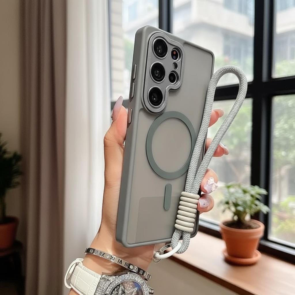 Custodia magnetica traslucida opaca di lusso con cordino per Samsun...