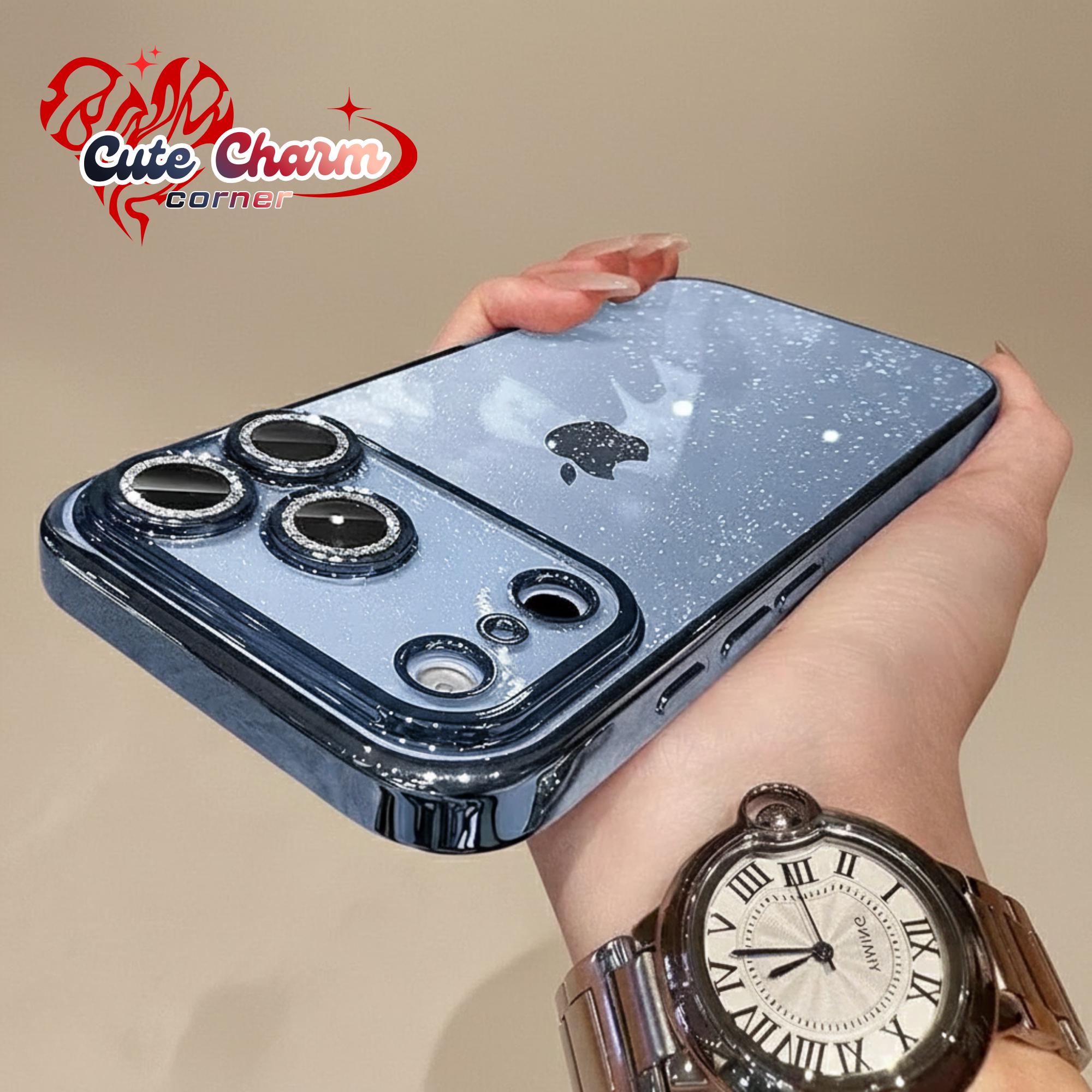 Custodia trasparente per telefono con glitter di lusso e cornice per fotocamera placcata Rinnova il ...