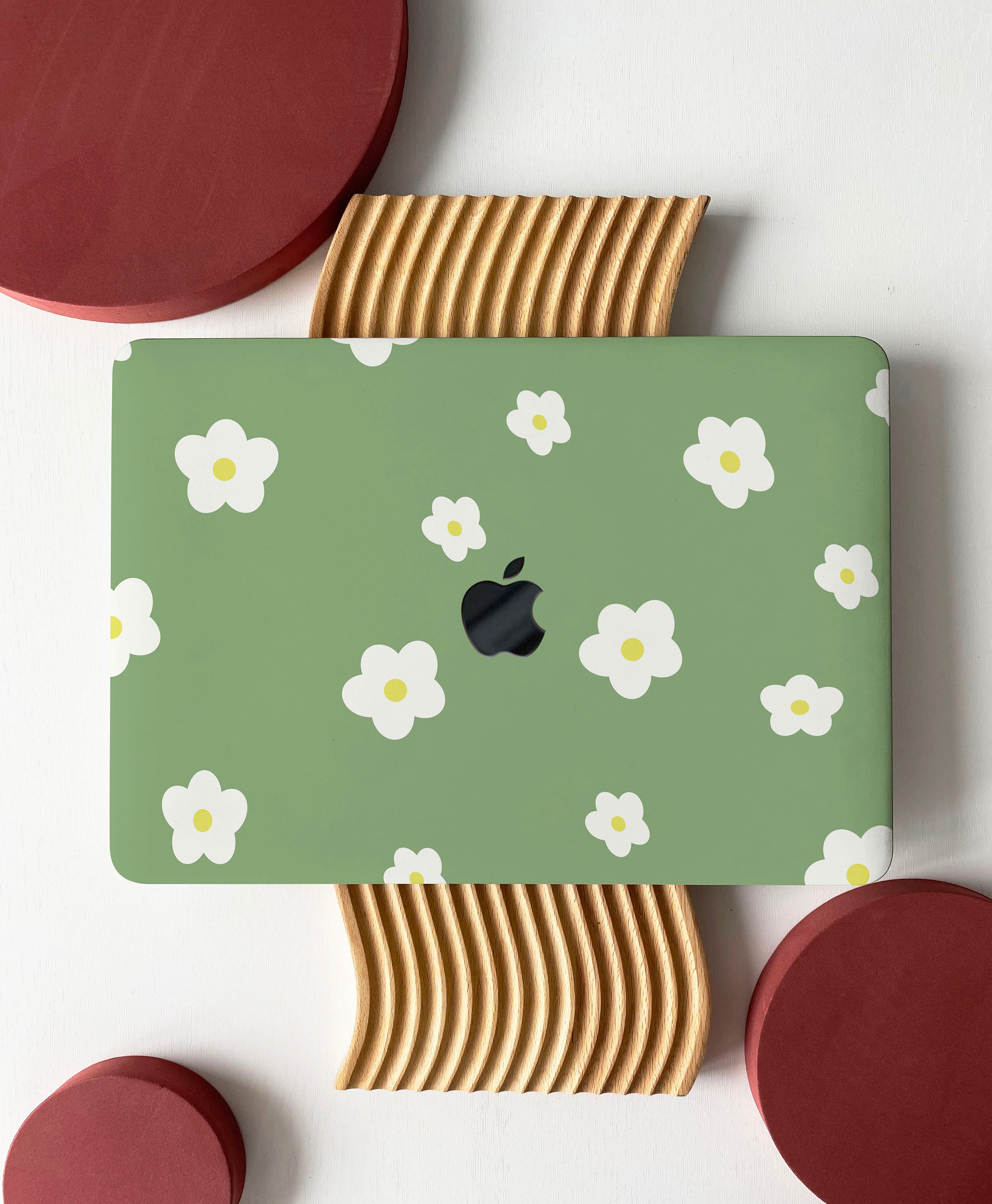 Cute Flowers Custodia rigida con guscio verde per MacBook Air 13 Ma...