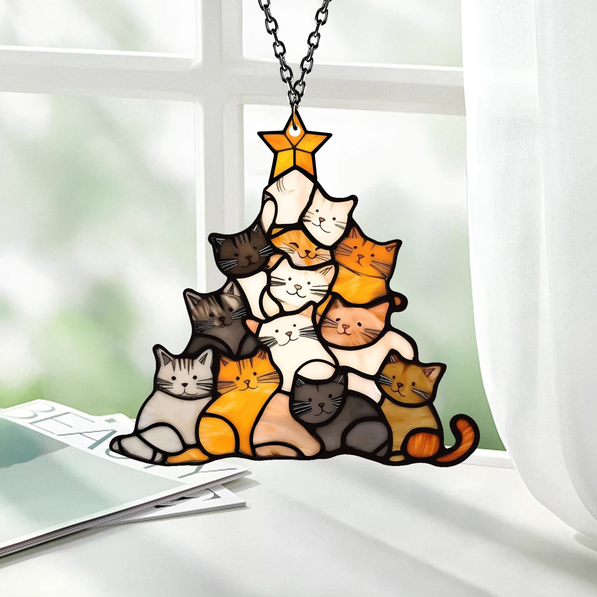 "Ornamento acchiappasole per albero di Natale a forma di gatto, simpatico gatto impilato per or...