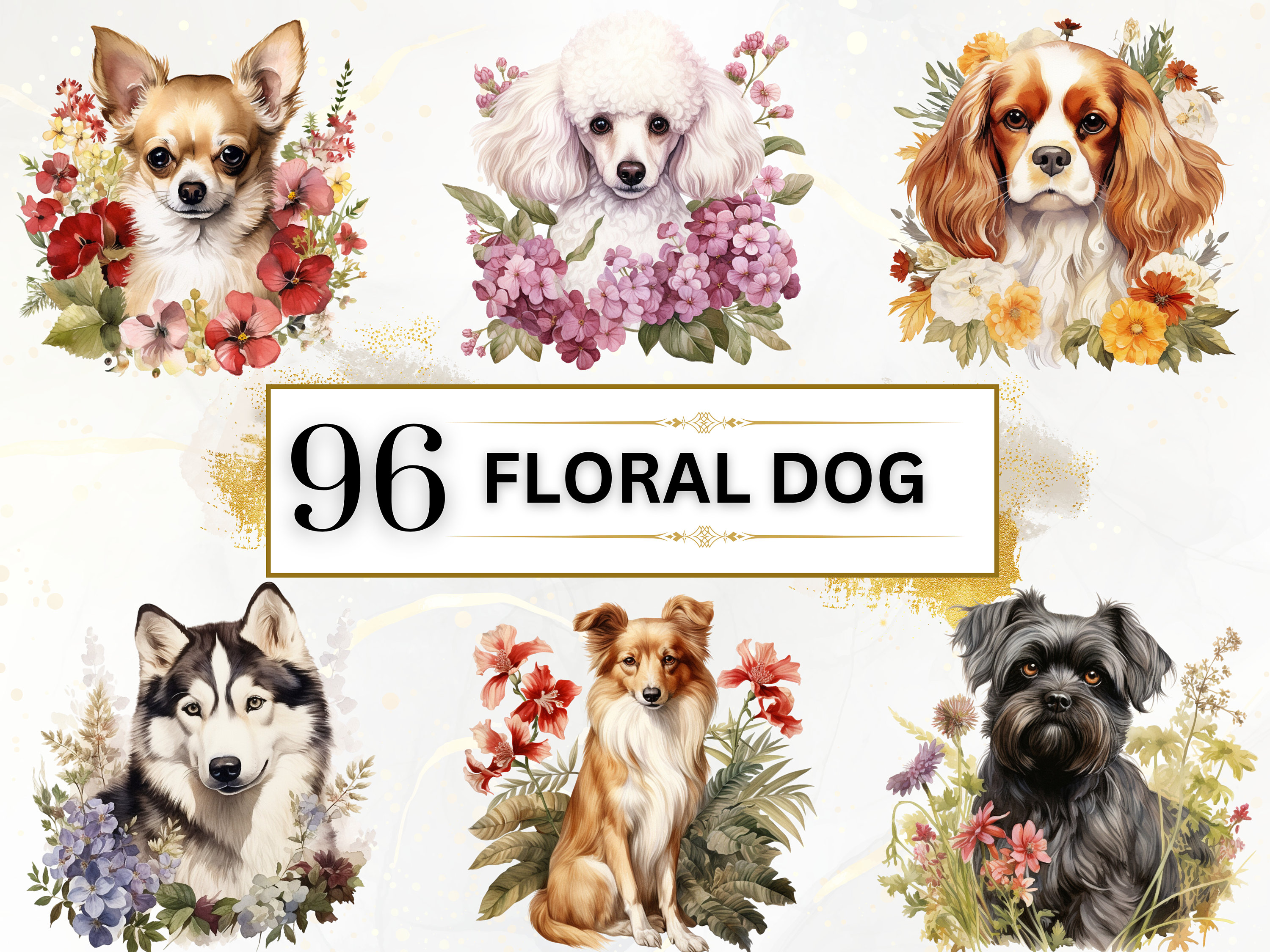 Cane Clipart acquerello cani PNG razze di cani PNG floreale cane Cl...