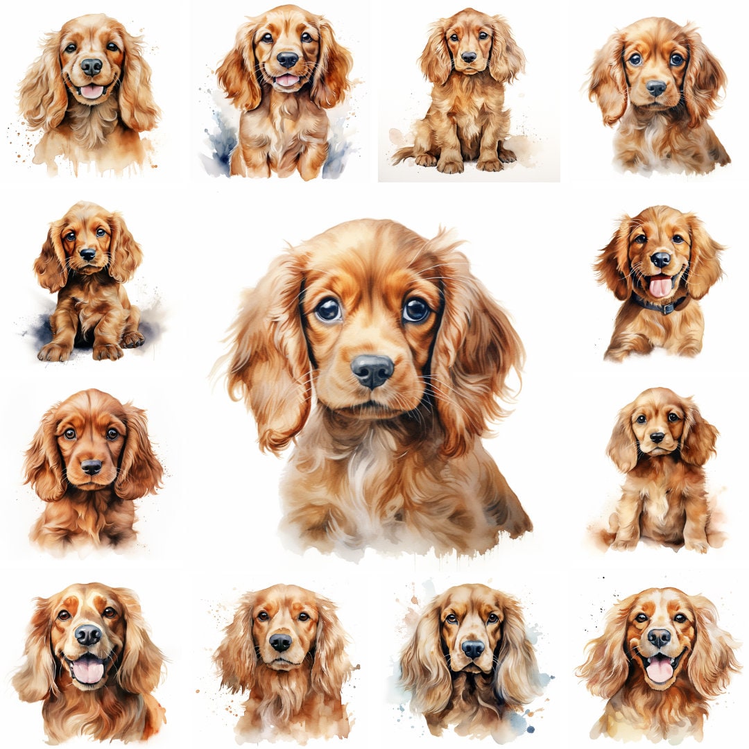 20 Cocker Spaniel cane e cucciolo acquerello Clipart immagini PNG, ...