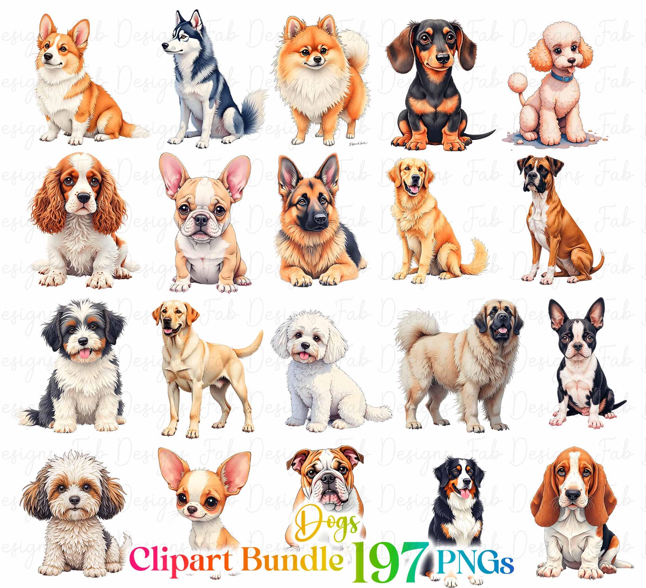 197 Cute Dogs Clipart Bundle, Razze di cani PNG, Cucciolo carino PN...