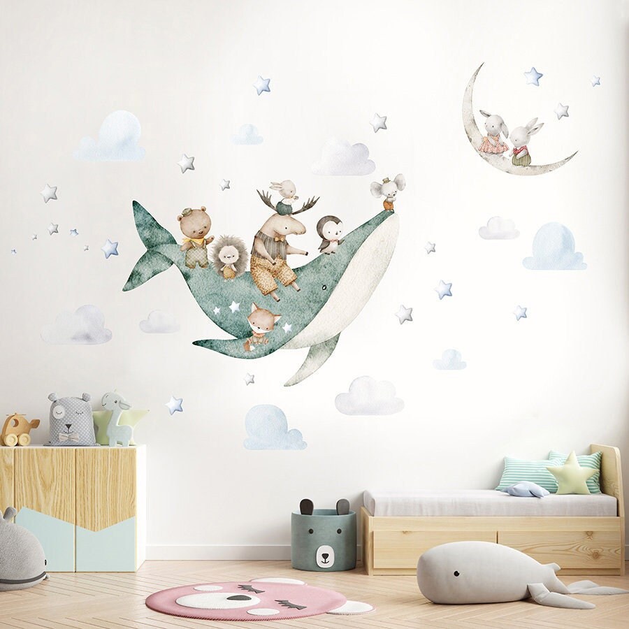 Decalcomanie da muro animali, decalcomania da muro stelle lunari, d...