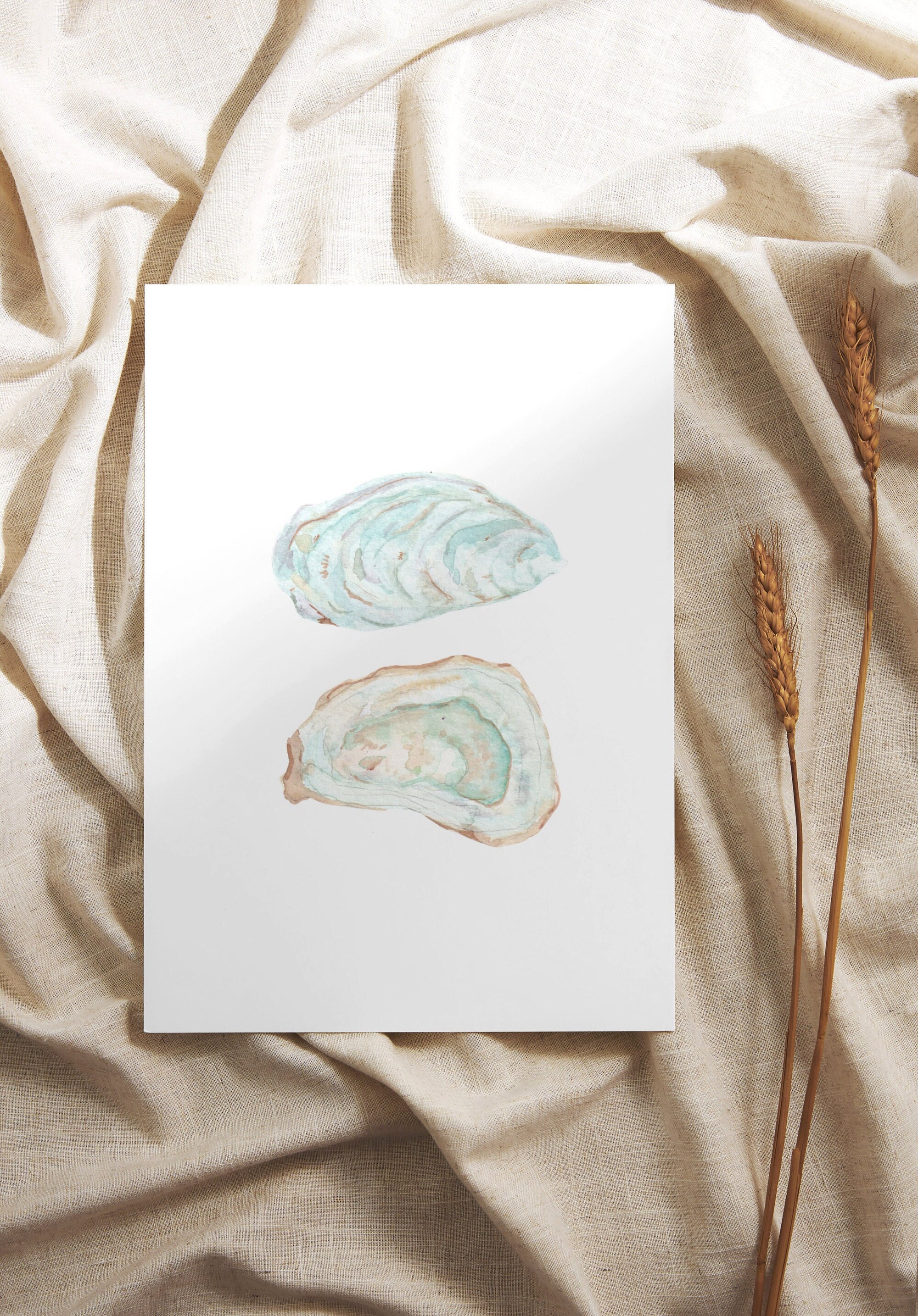 Stampa acquerello di ostriche. Arte di ostriche. Stampa oceanica. A...