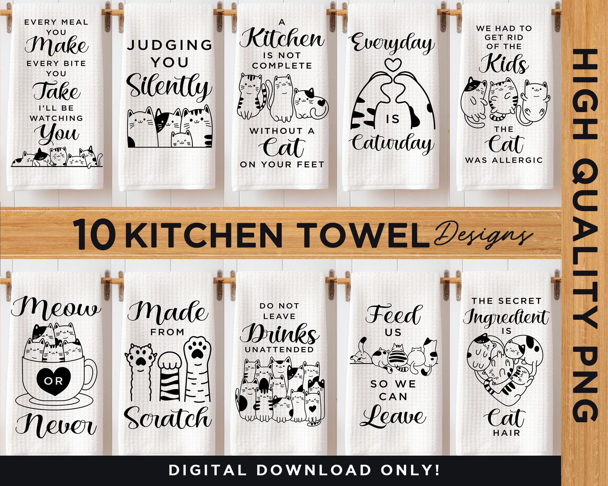"Pacchetto di asciugamani da cucina a tema gatto divertente per stampa a sublimazione, disegni ...