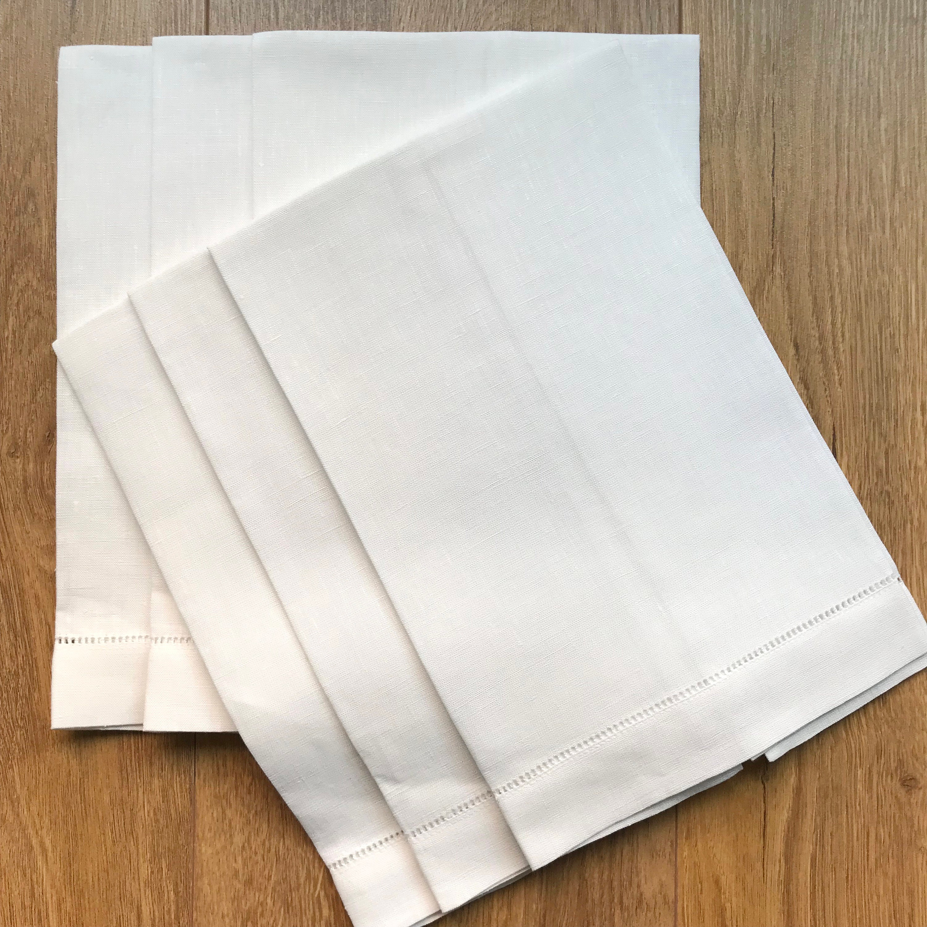 "50 asciugamani bianchi in lino pesante con orlo a giorno 14\&...