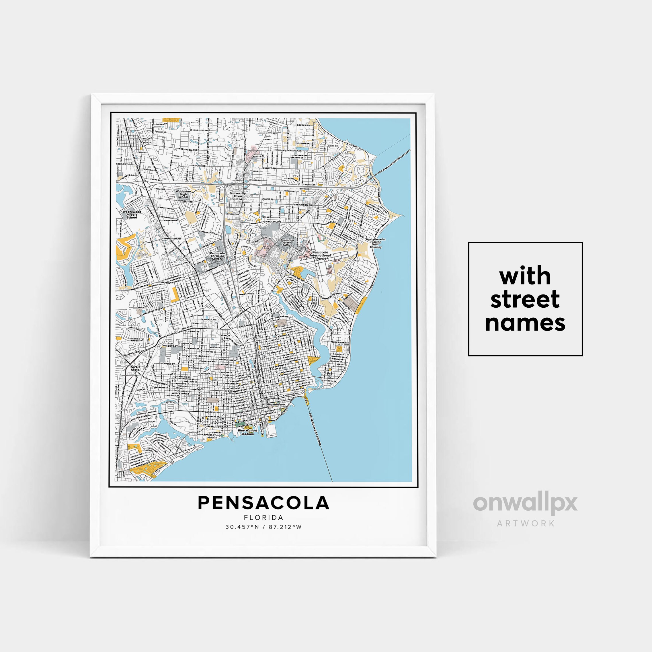 Pensacola Map Print, Street Names Pensacola Print, Printable Map Of...