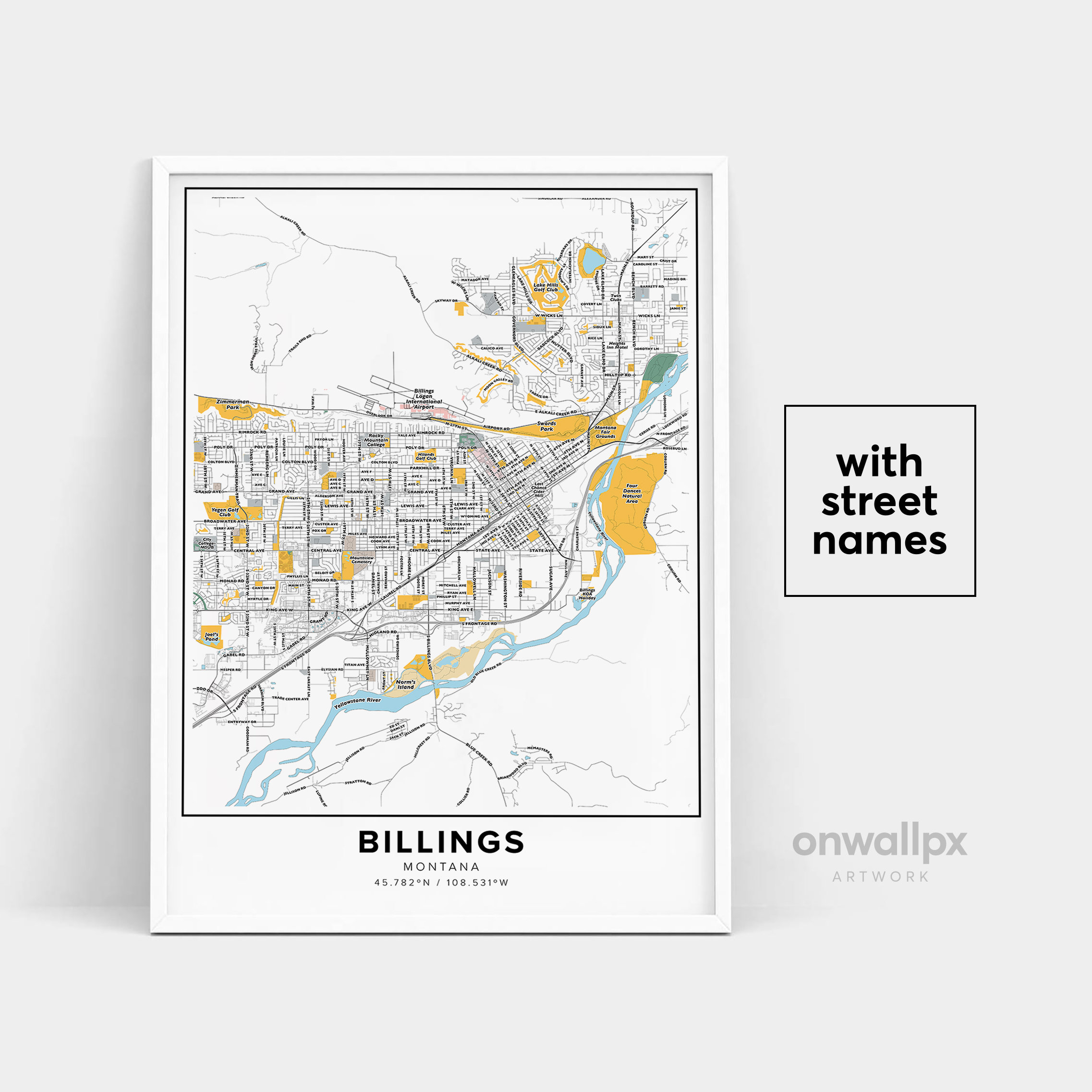Billings Map Print, Street Names Billings Print, Printable Map Of B...