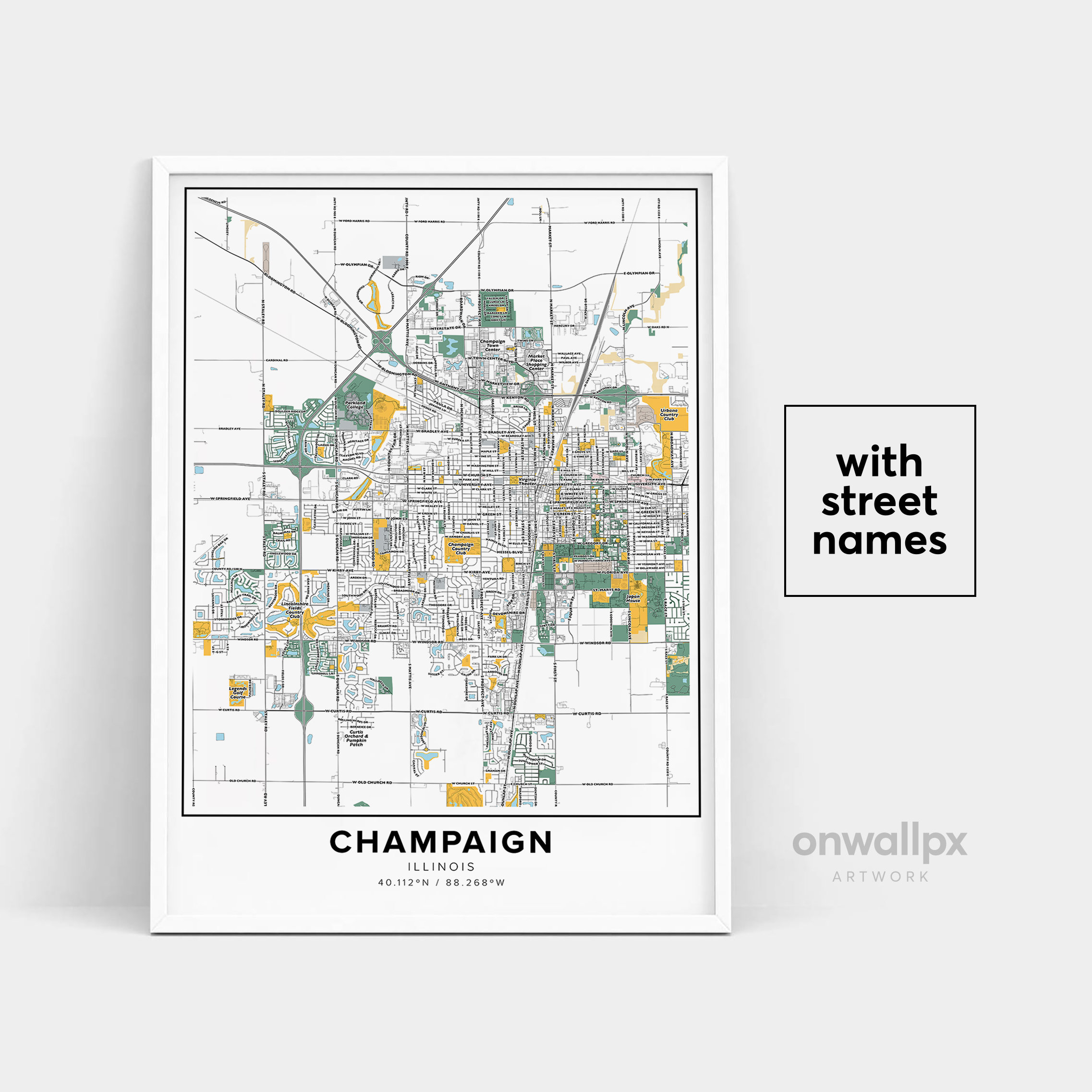Champaign Map Print, Street Names Champaign Print, Printable Map Of...