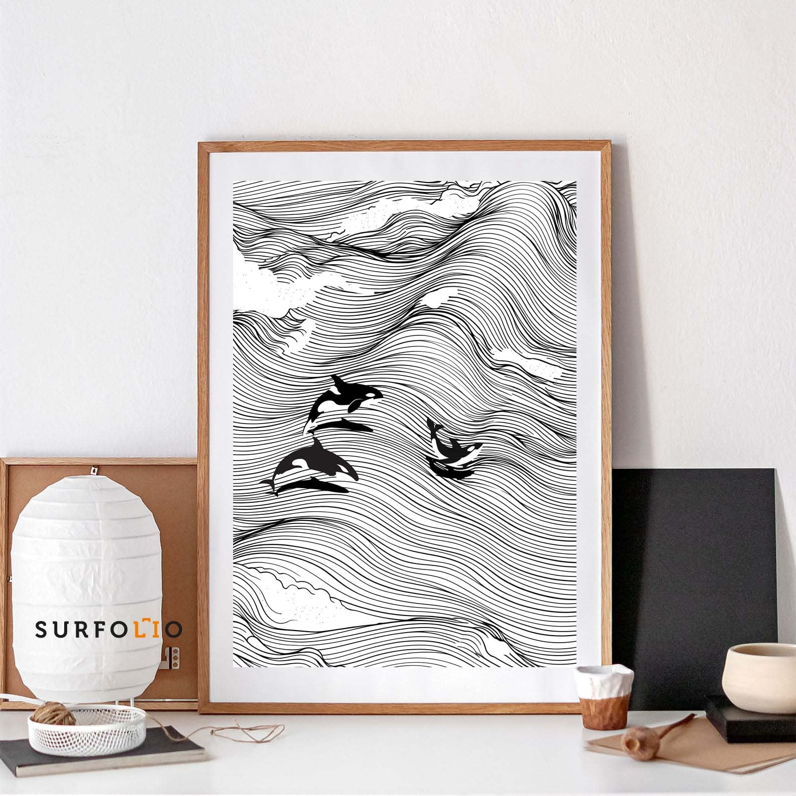 Stampa di orca, Arte murale con orca, Stampa di vita marina, Disegn...
