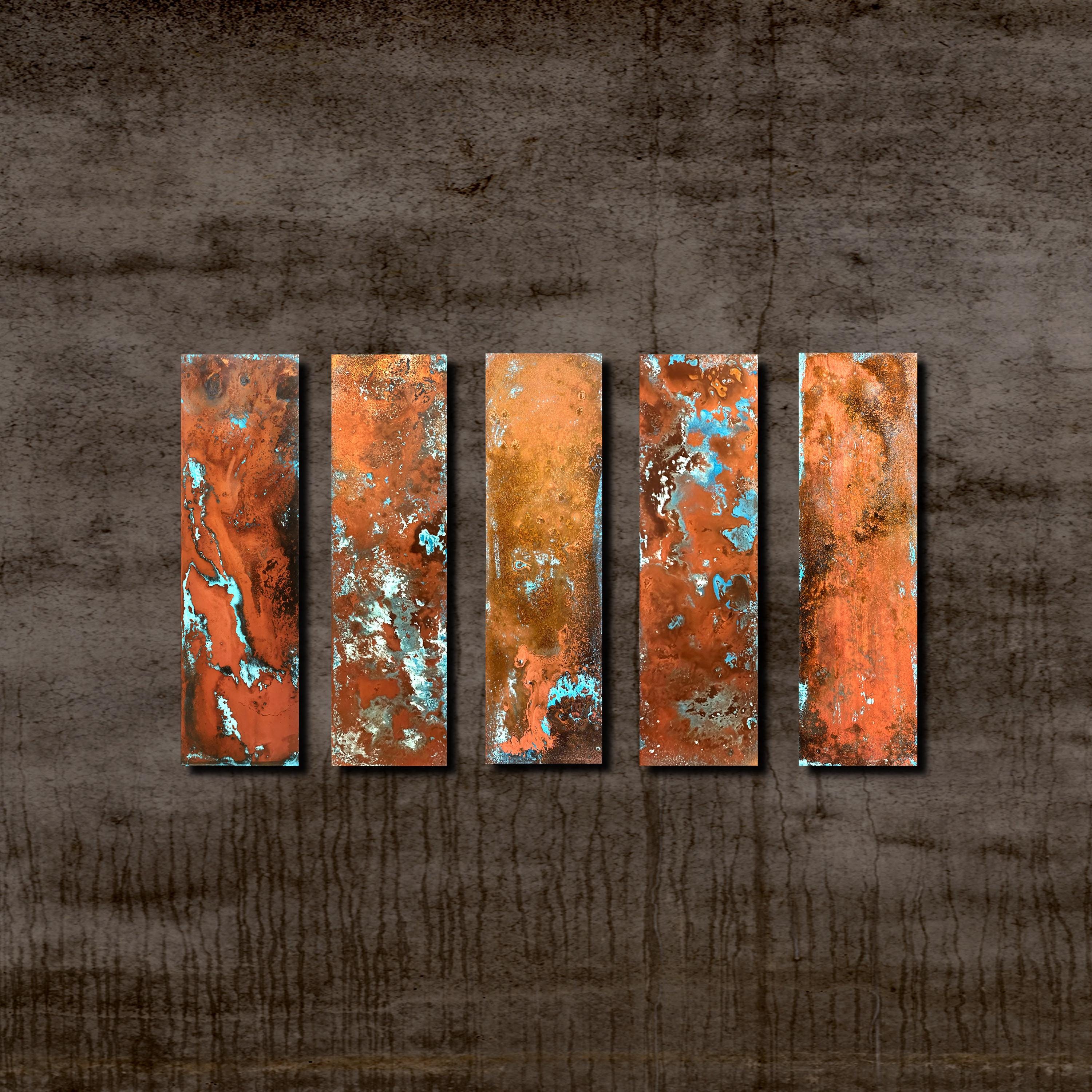 Decorazione murale in rame con esclusivo motivo patinato. Set di 5 grandi rettangoli in rame - possi...