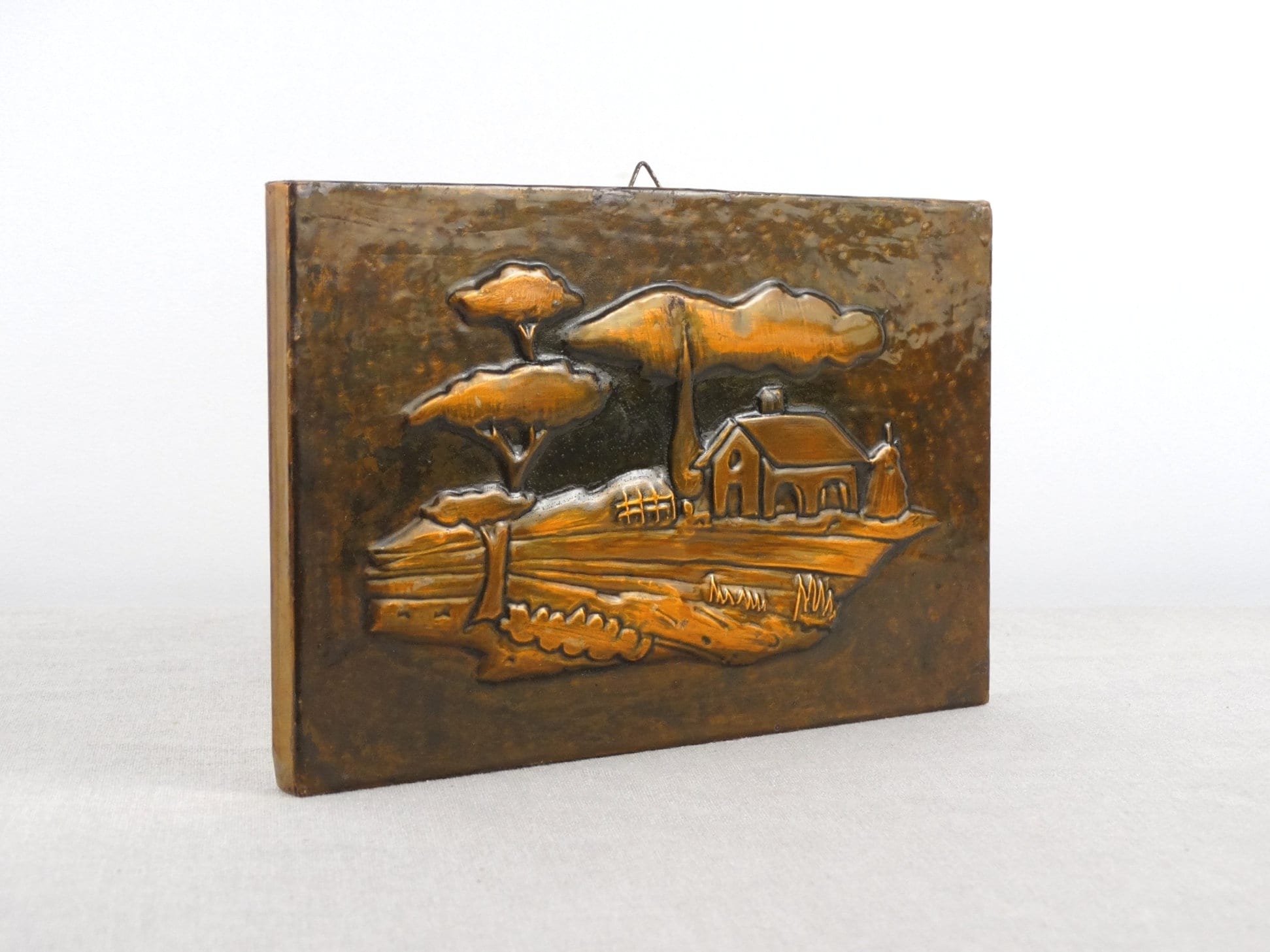 Arazzo da parete in rame vintage, arte murale in rame sbalzato, dec...