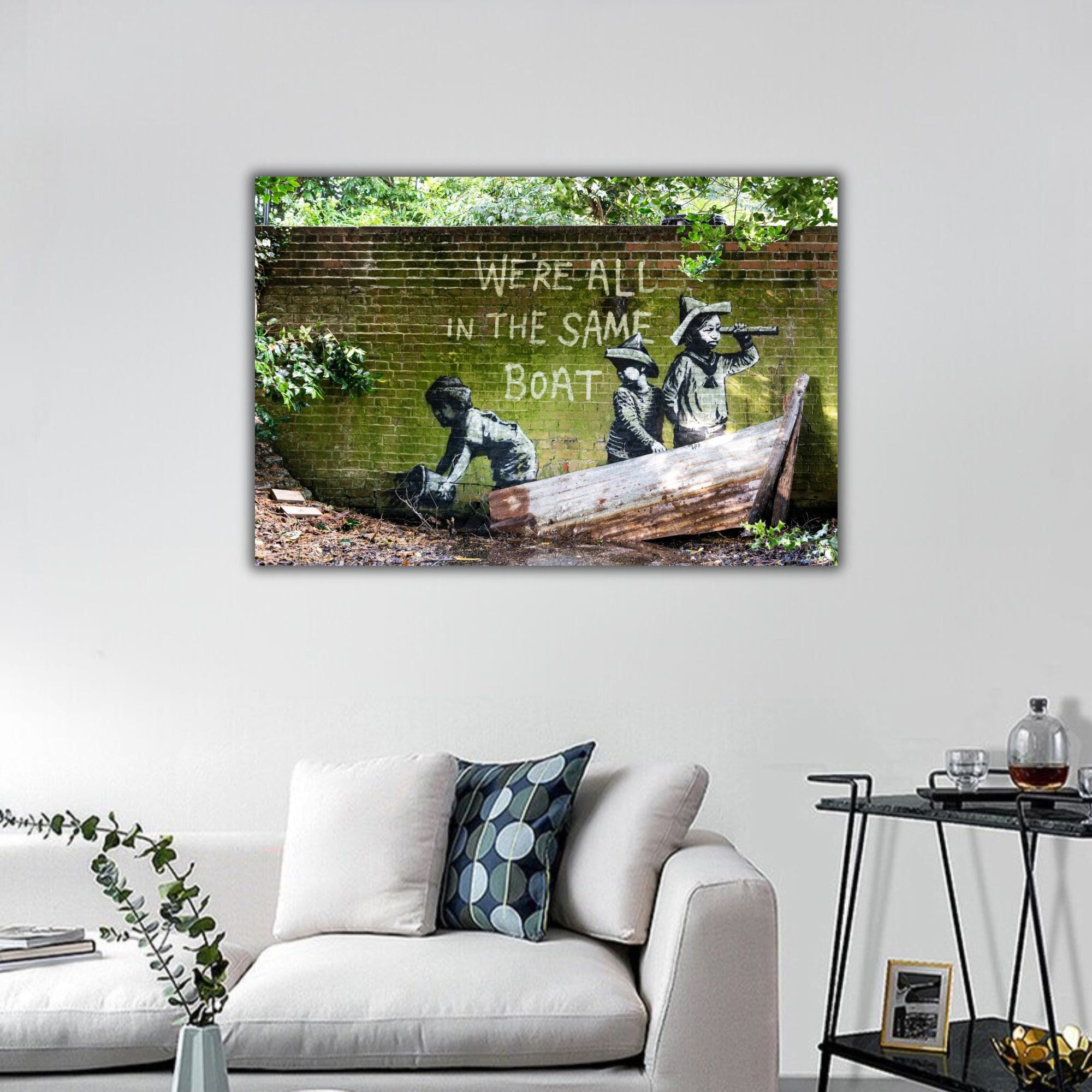 Banksy We're All on the Same Boat Wall Art, Banksy Kids and Boat St...