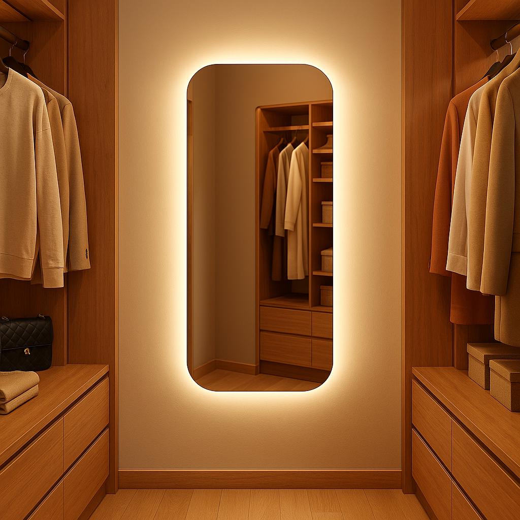 Specchio rettangolare retroilluminato a LED per armadio o cabina ar...