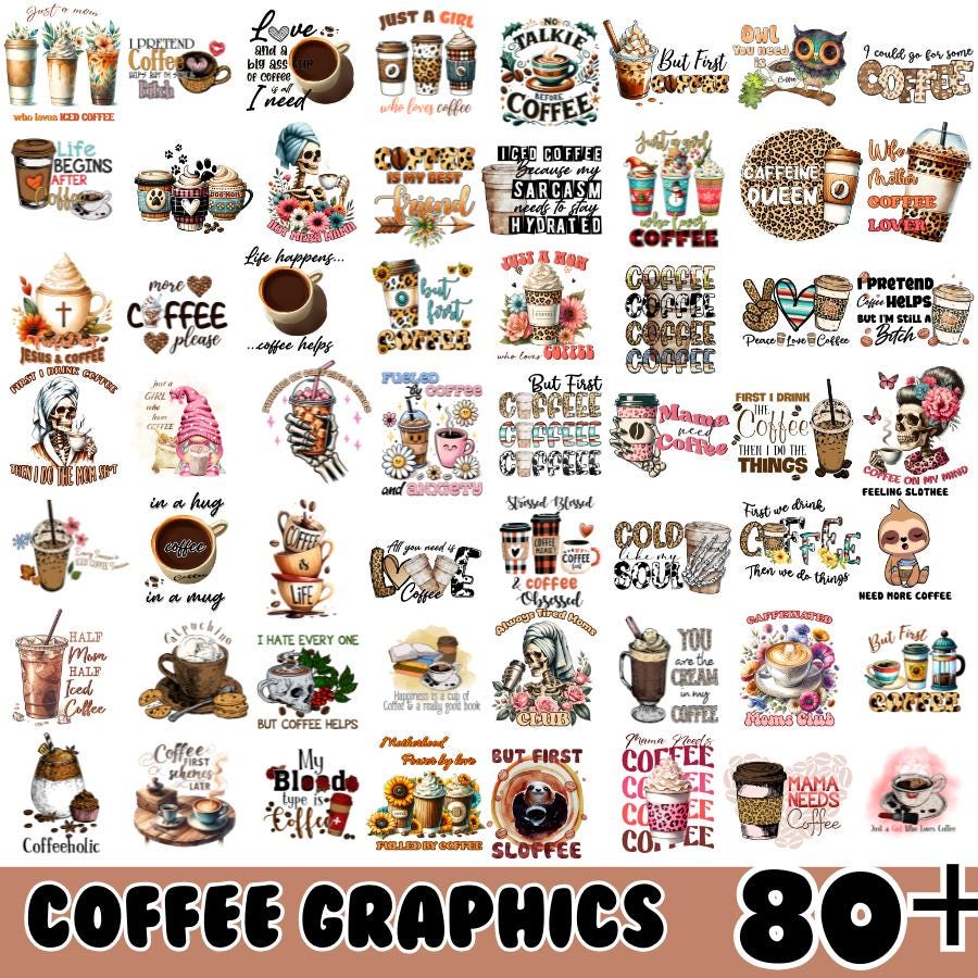 Pacchetto sublimazione caffè, pacchetto Png caffè fre...