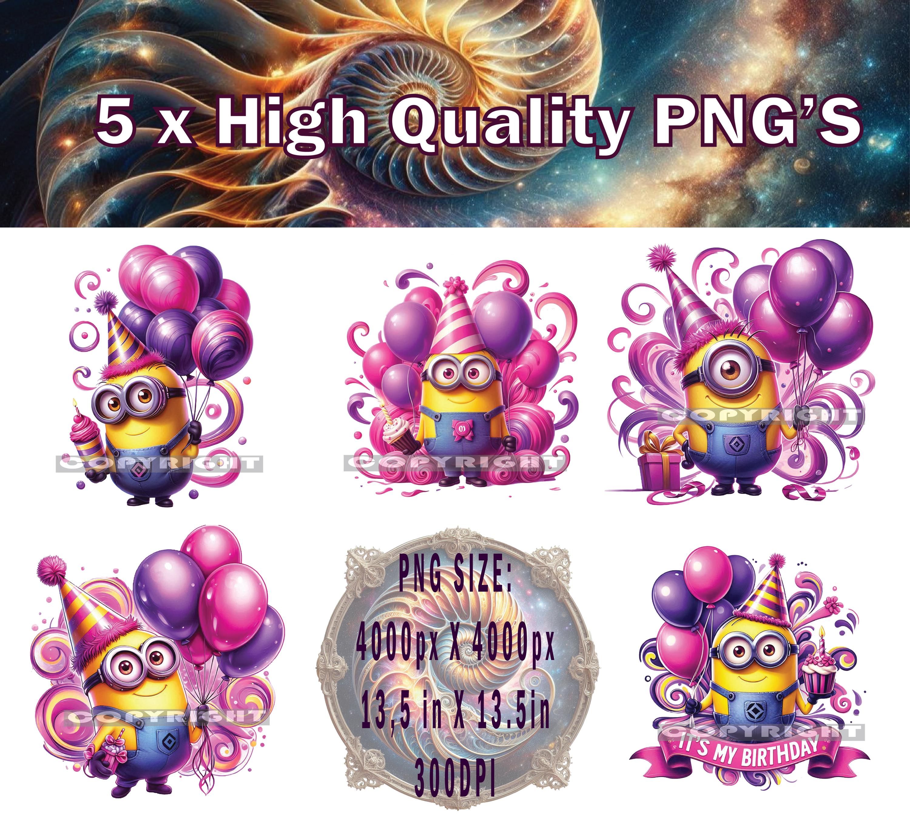 Minion Birthday Girl PNG x 5, Minion Birthday png, Minion Birthday Girl T-shirt Design, Minion Cake ...