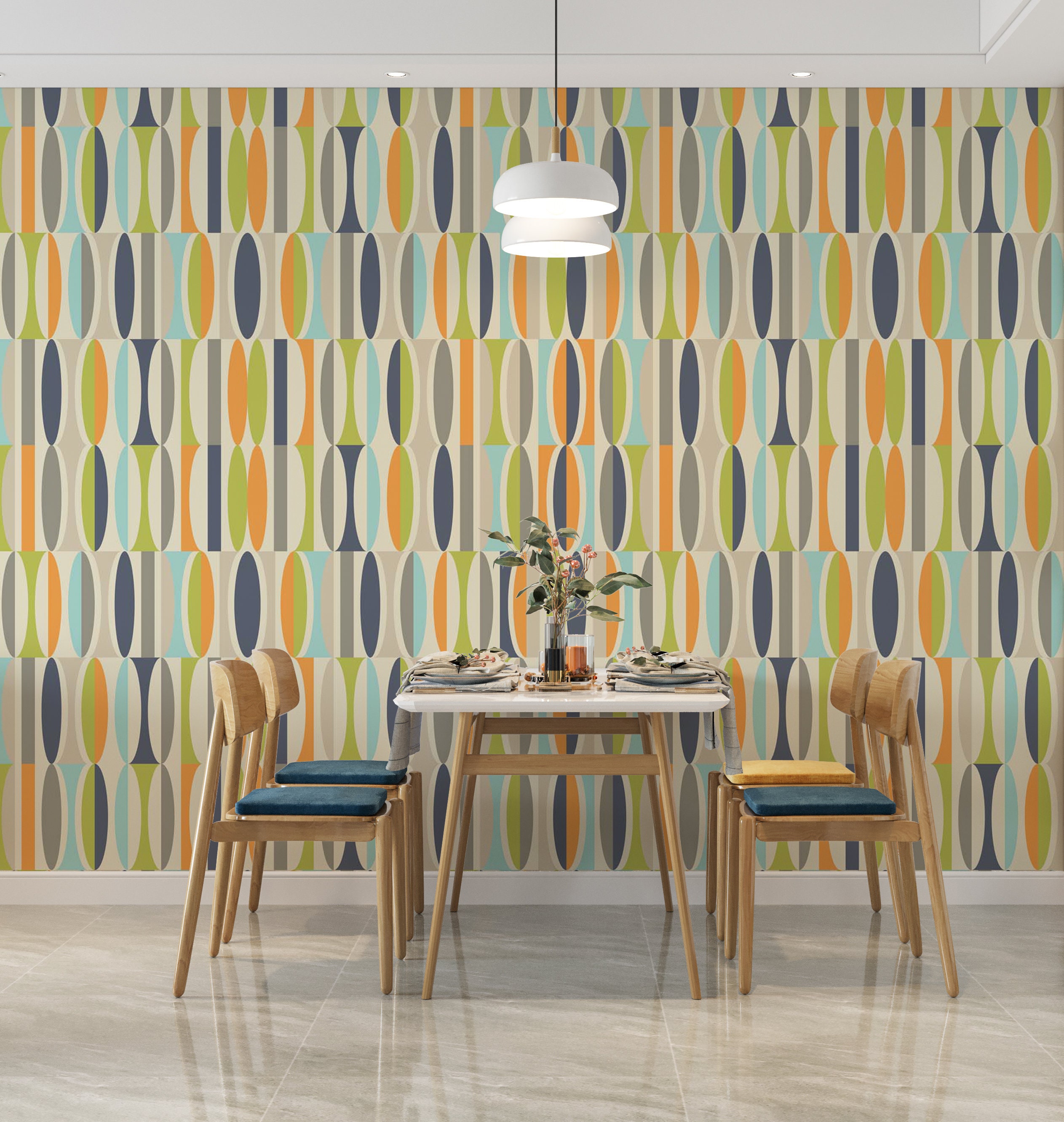 "Carta da parati murale tradizionale non incollata e staccabile con carta da parati retrò...