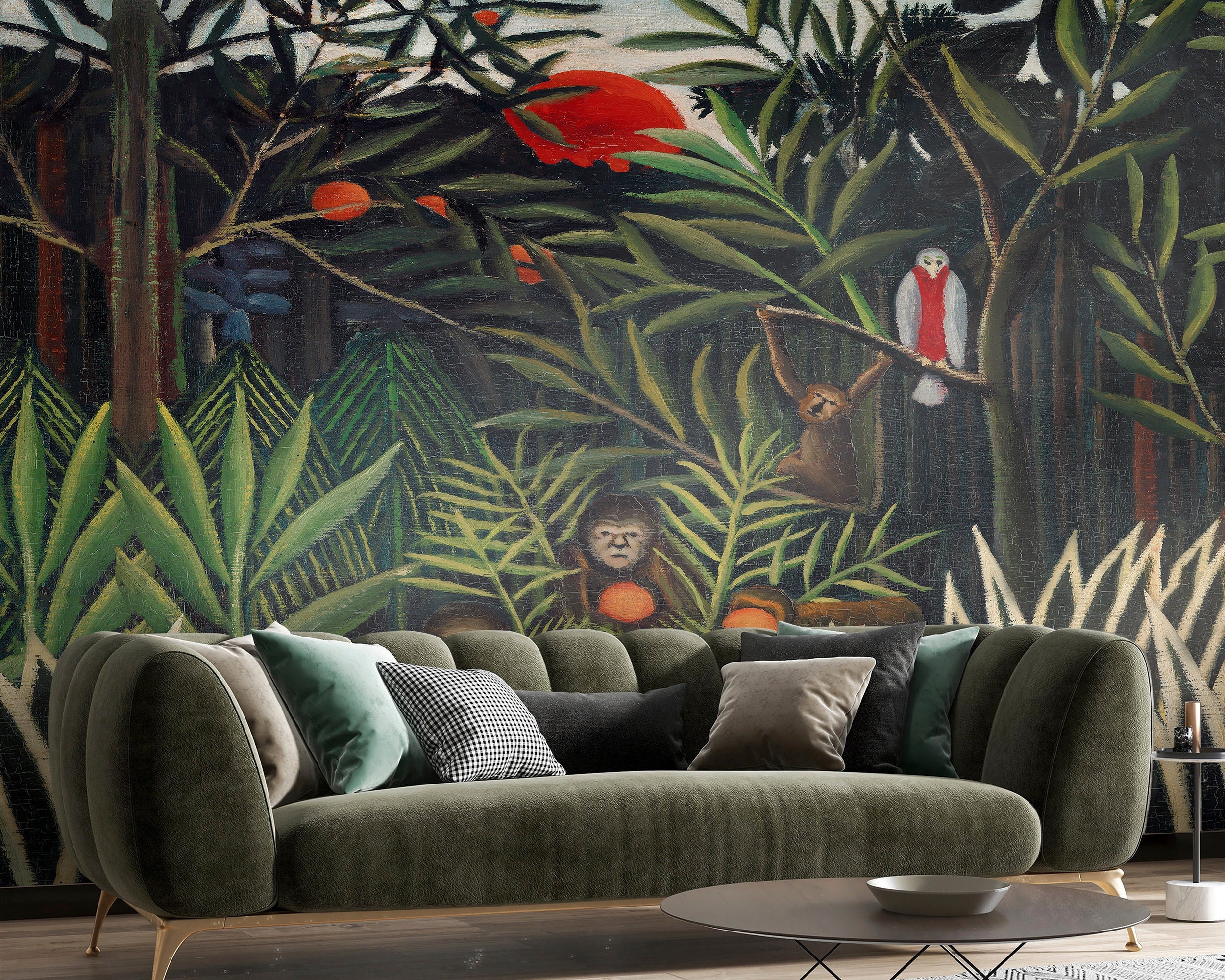Carta da parati, carta da parati Scimmie e pappagalli di Henri Rous...