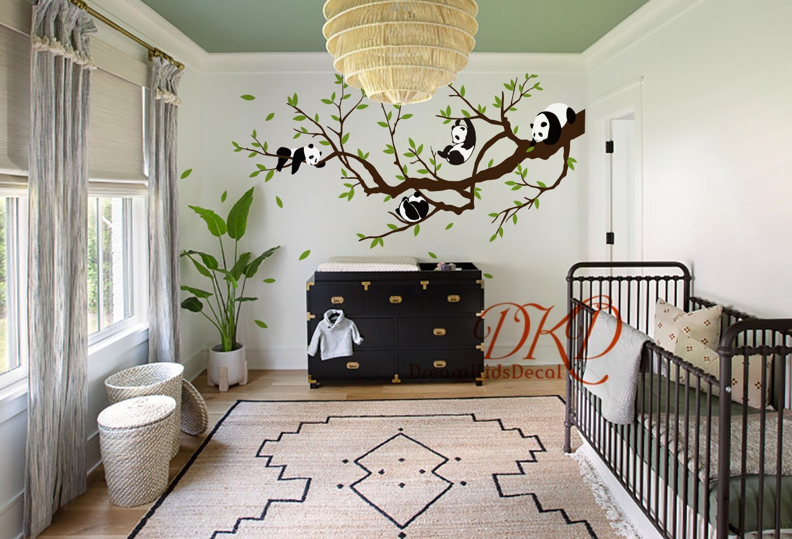 Tree with Panda Wall Decal for Kids Room, Panda wall Sticker for Nursery, Tree Decal Panda Bunch, Pa...