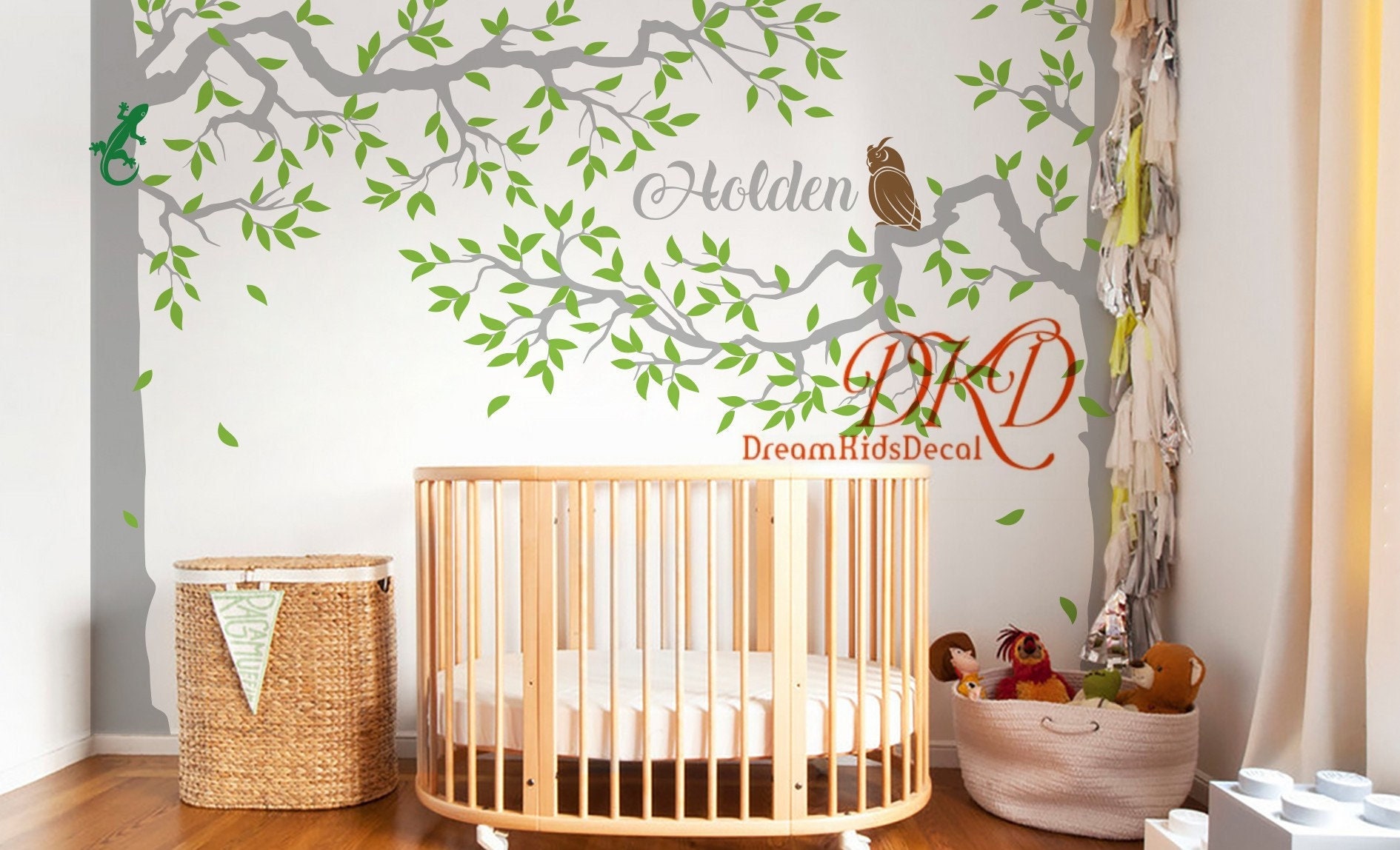Nursery Wall Decal Tree branch with owl decal, Personalized Name Decal for Kids Room Playroom Branch...