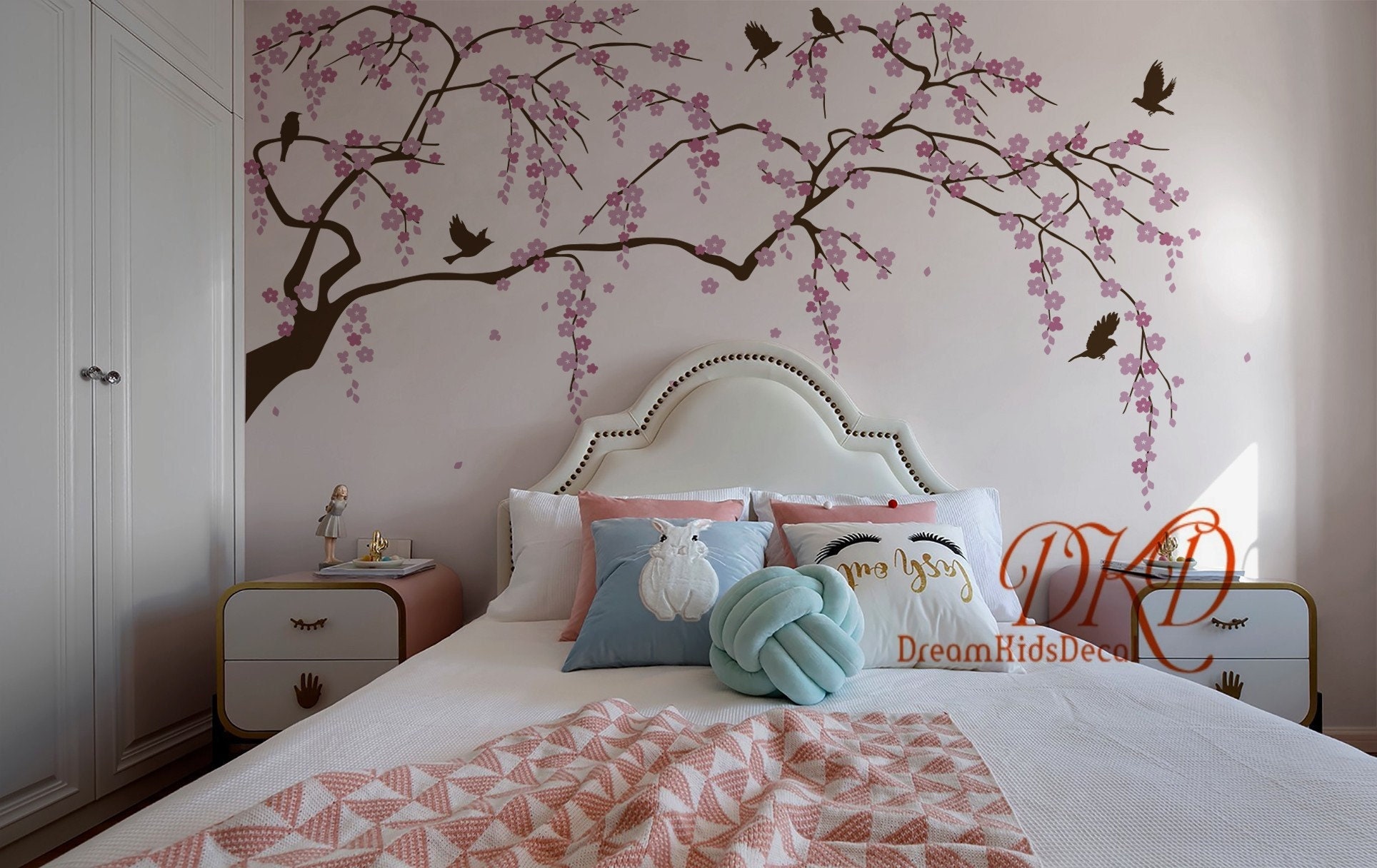 Cherry blossom Tree Wall Decal, Baby girl nursery wall decal, Wall Sticker, tree decals, Nursery dec...