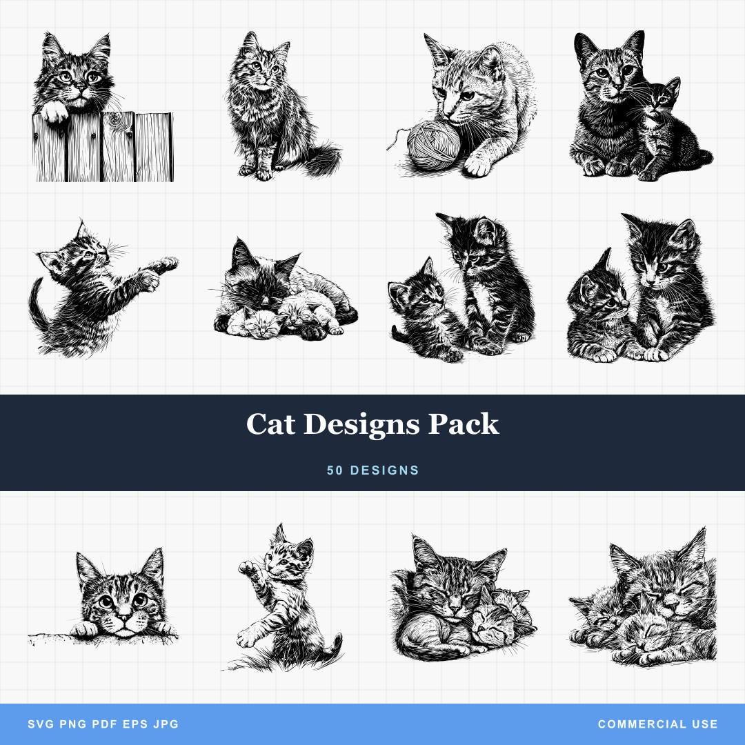 Pacchetto di disegni di gatti e gattini in formato PNG e SVG per in...