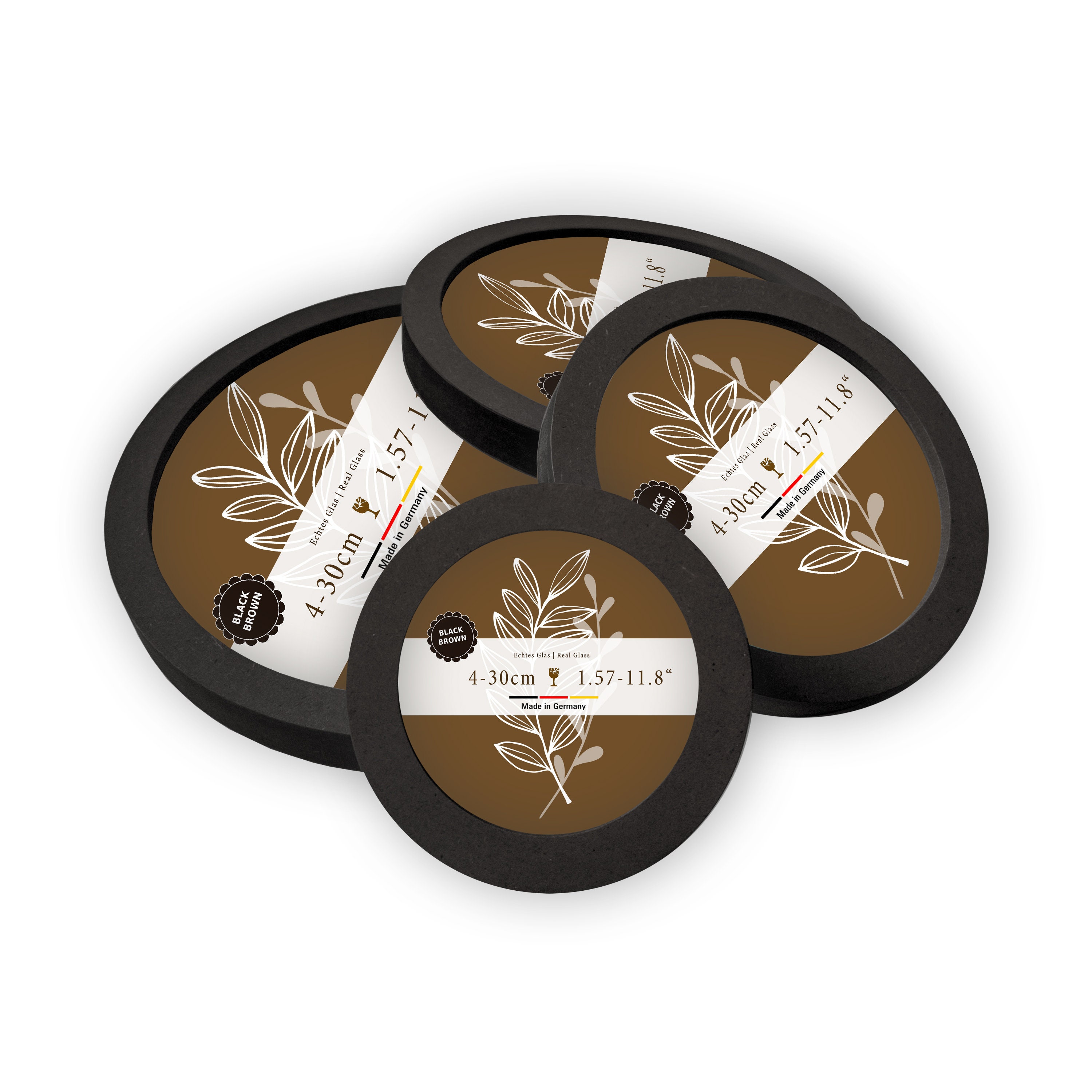 Cornici in legno sostenibili, rotonde con vero vetro Nero-Marrone |...