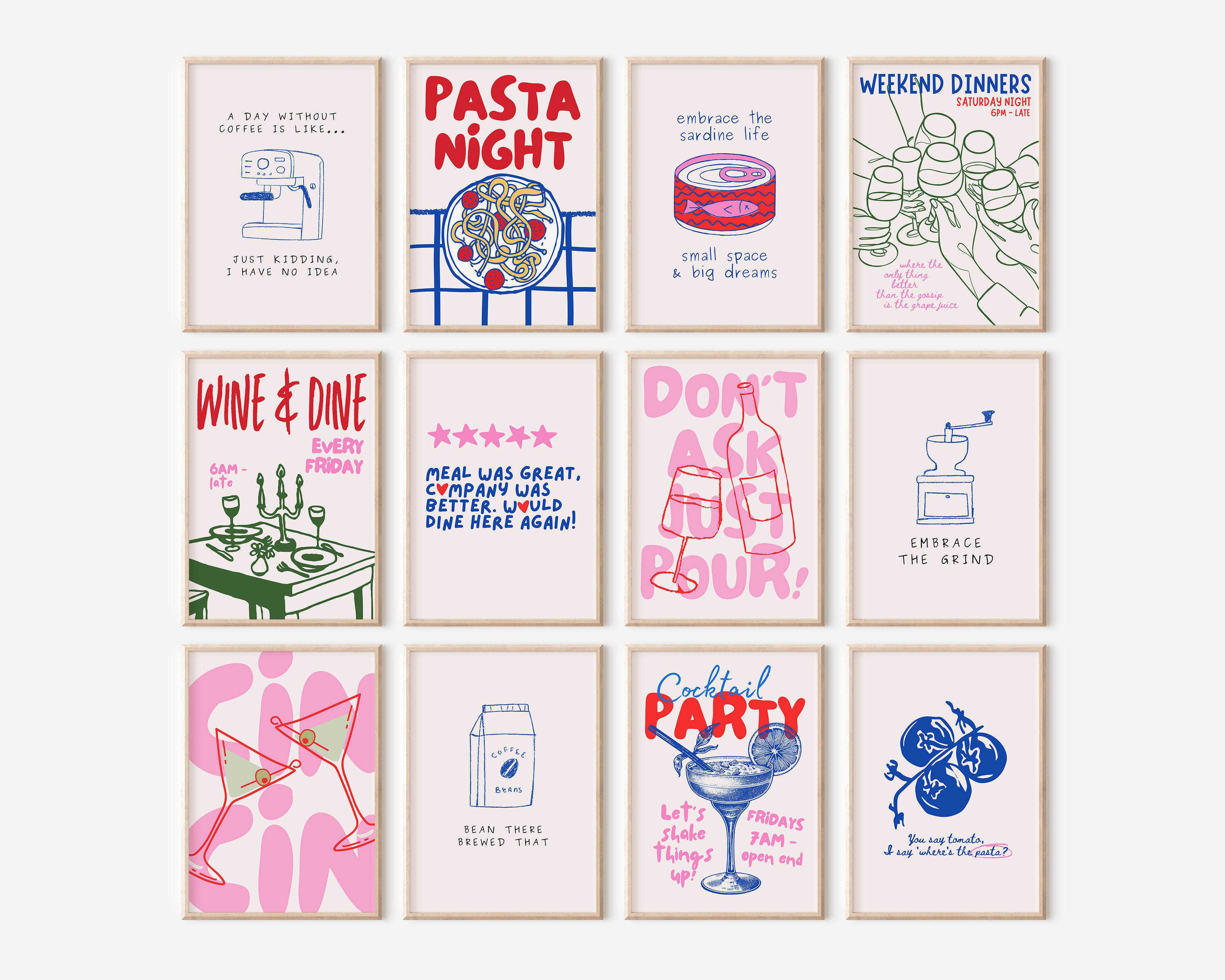 set da parete per galleria di stampe artistiche per cucina da 12, a...