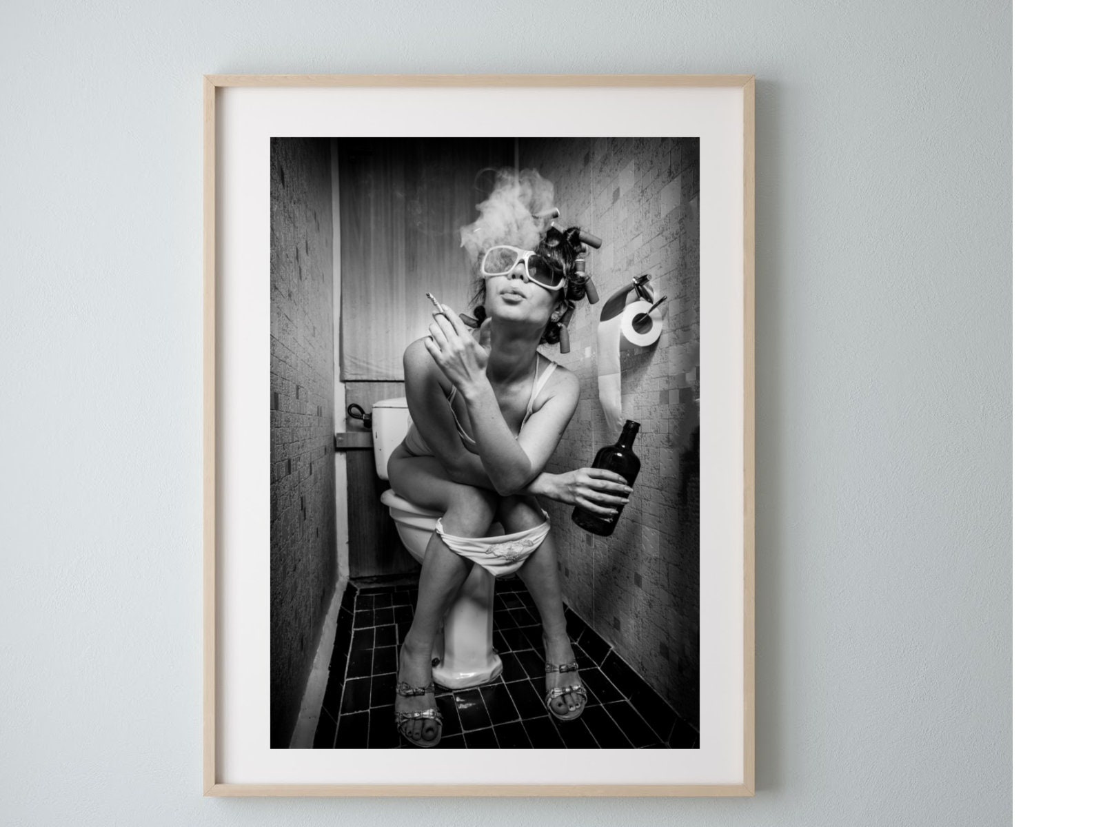 Ragazza sul water / Ragazza sul water che beve / Stampa ragazza sul water che beve / Stampa murale m...
