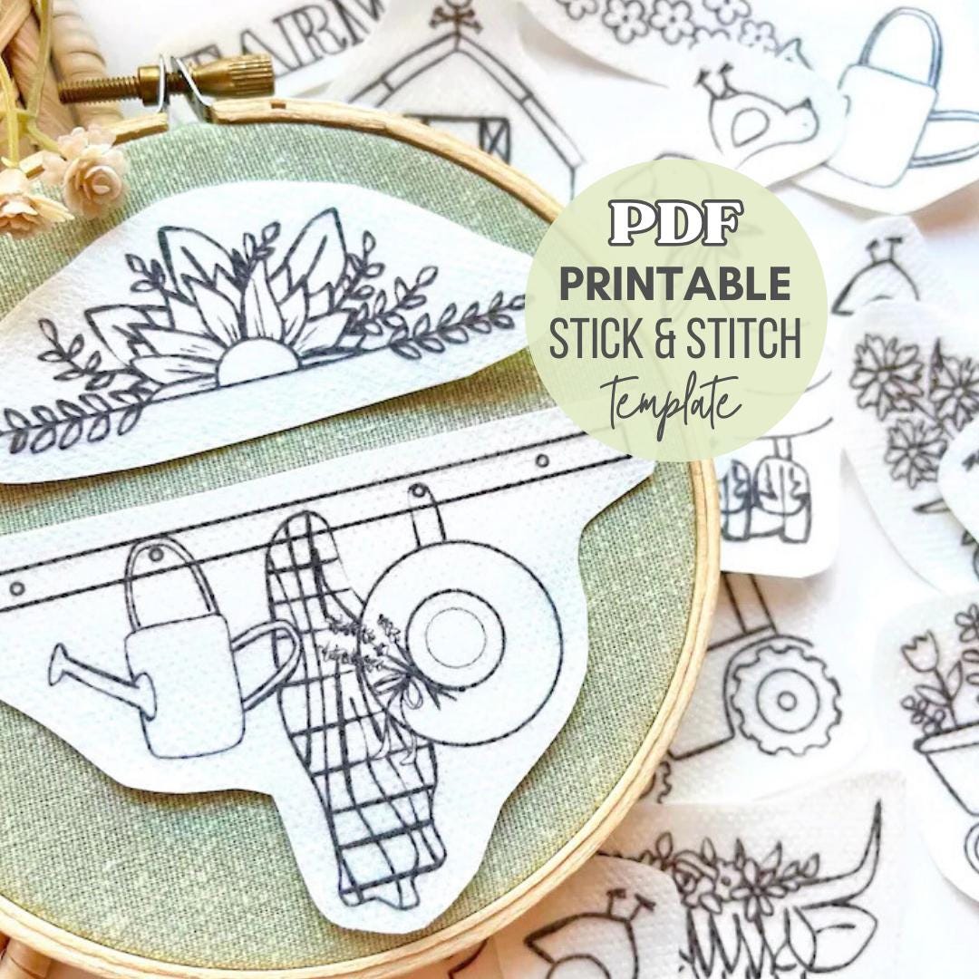 Disegni da ricamo stampabili con punto e ricami in stile fattoria, ...