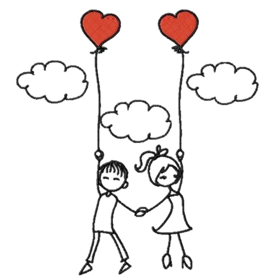 Questo grazioso ricamo raffigura una coppia di innamorati rappresentati da figure stilizzate che vol...