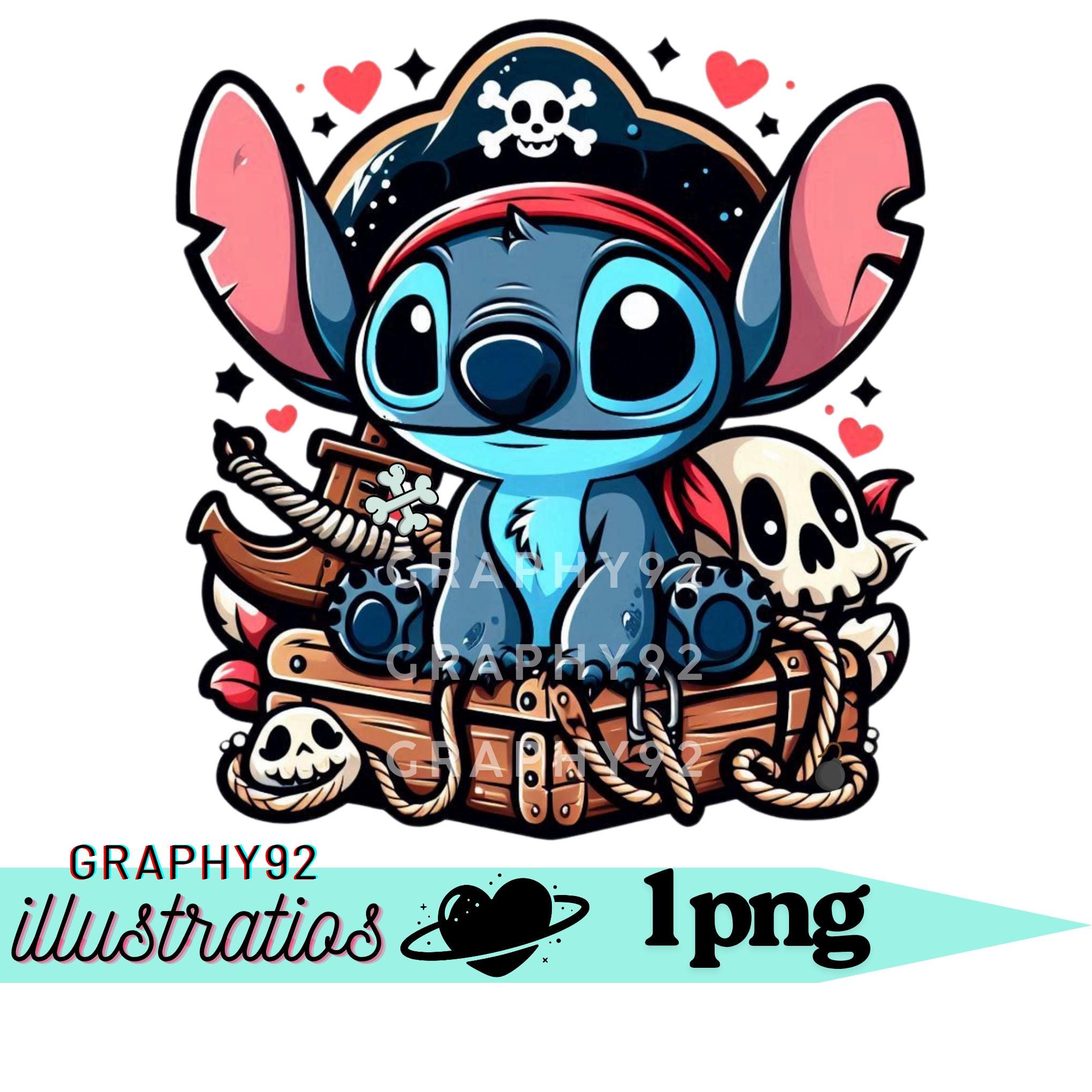 Disegno pirata Stitch, clipart png Stitch, capitano Stitch, persona...